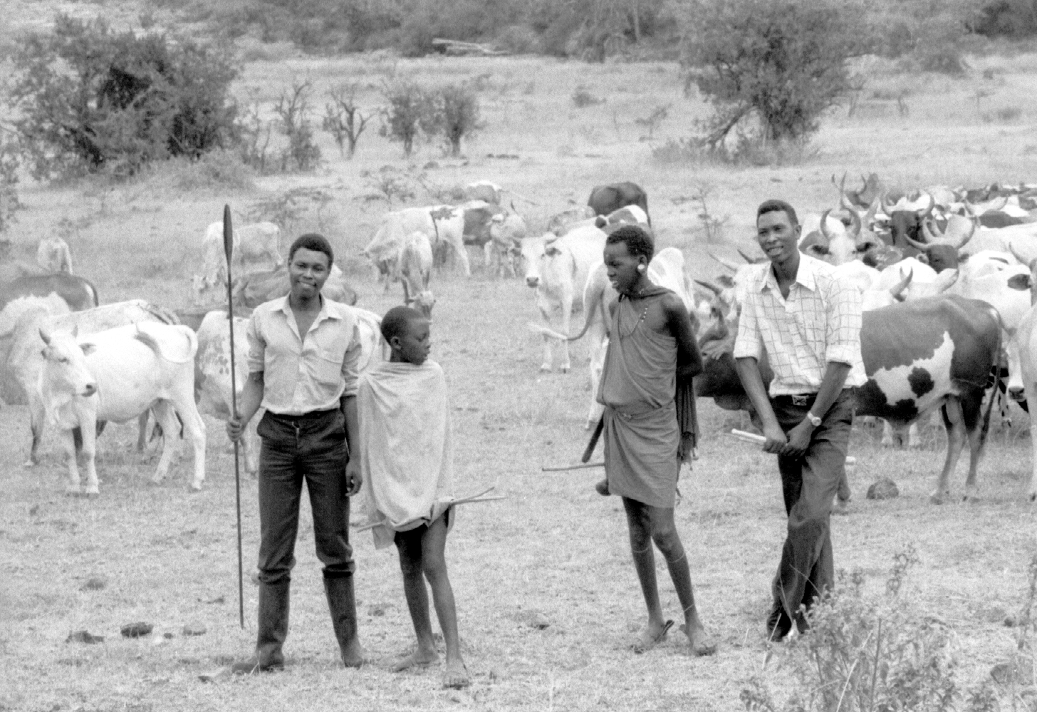 2 Maasai boys, TOmmi with spear and Benson for spear throwing story copy Tommi (left) and Benson (right) with the Maasai after “negotiating” for the picture.