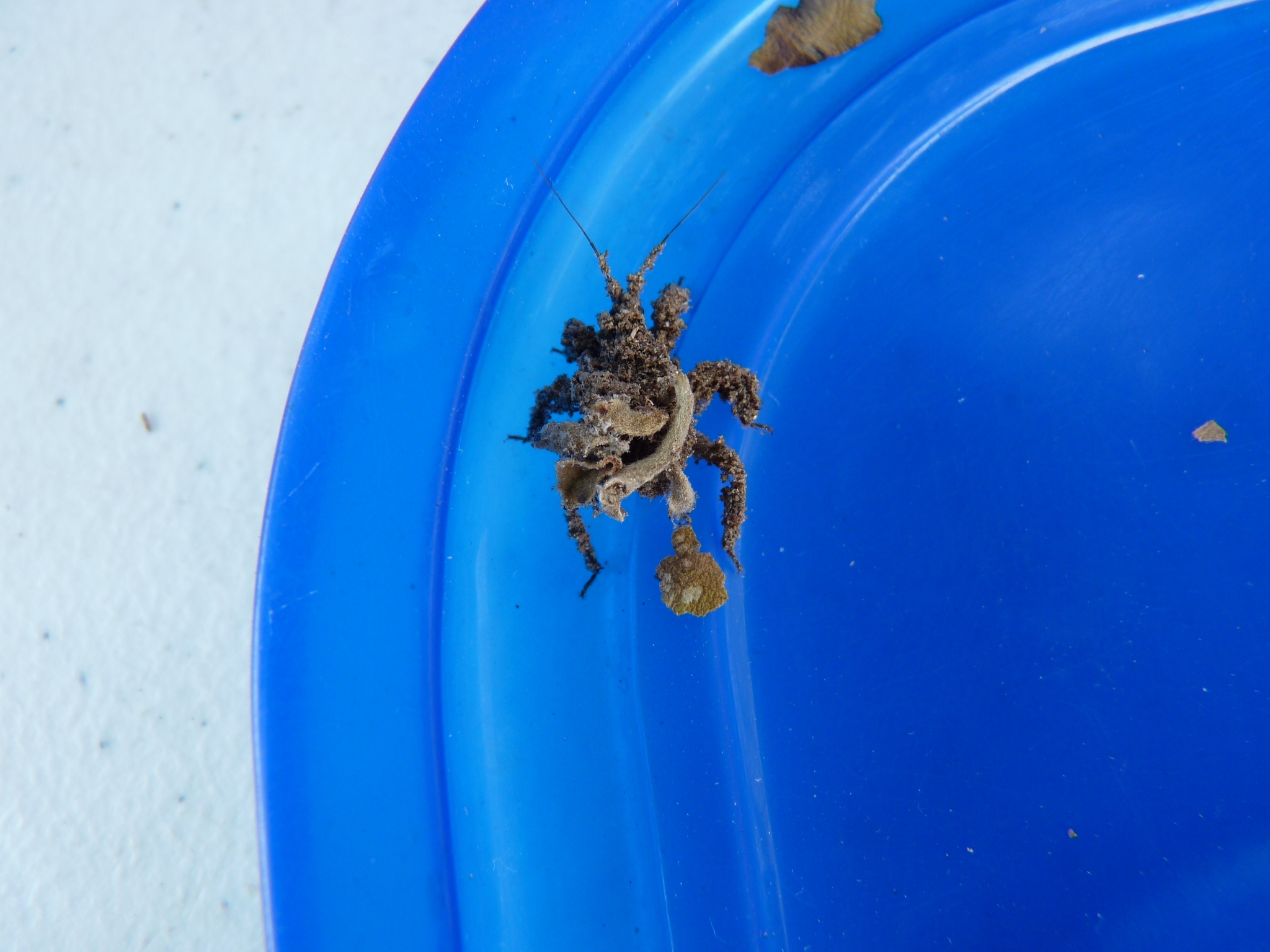 OK, there it is. It was the best camouflage trick I have seen. It seems that the said “beast”, an insect as it has six legs… covers itself with debris through some mechanism that I imagine it to be like an insect version of Velcro although it could also be a sticky secretion on its body where the debris gets glued! Nature surprises us all the time with large and small things!!!