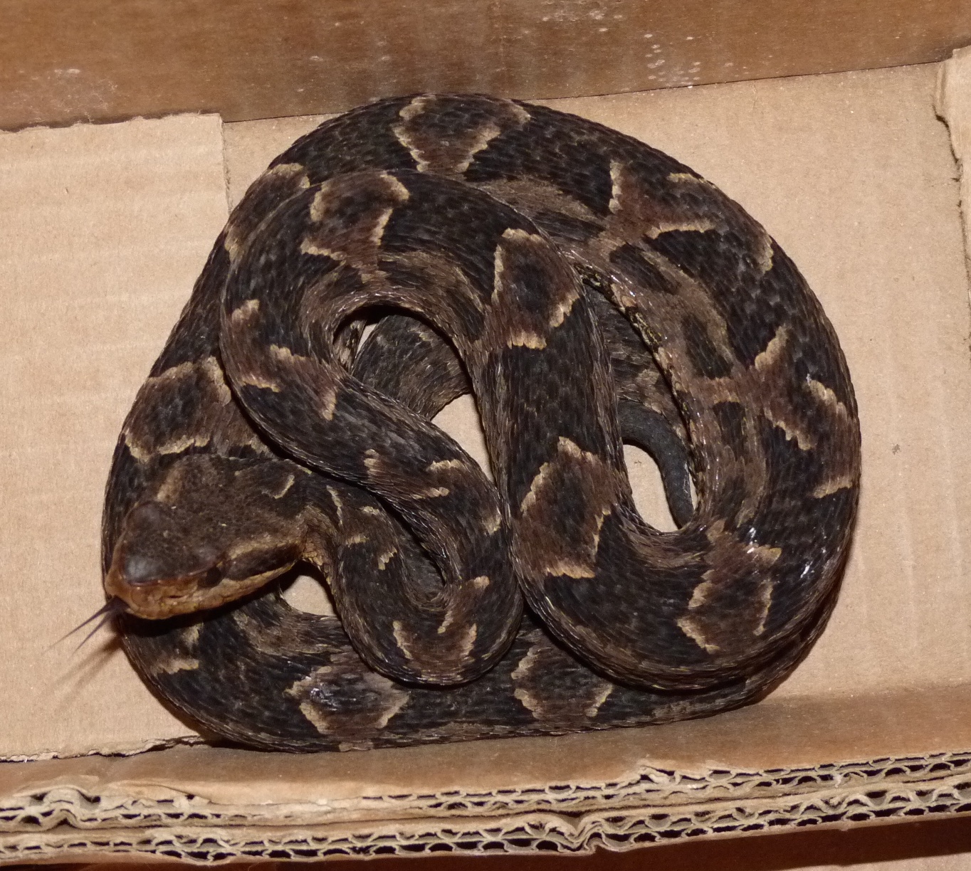 Coiled and rattling.