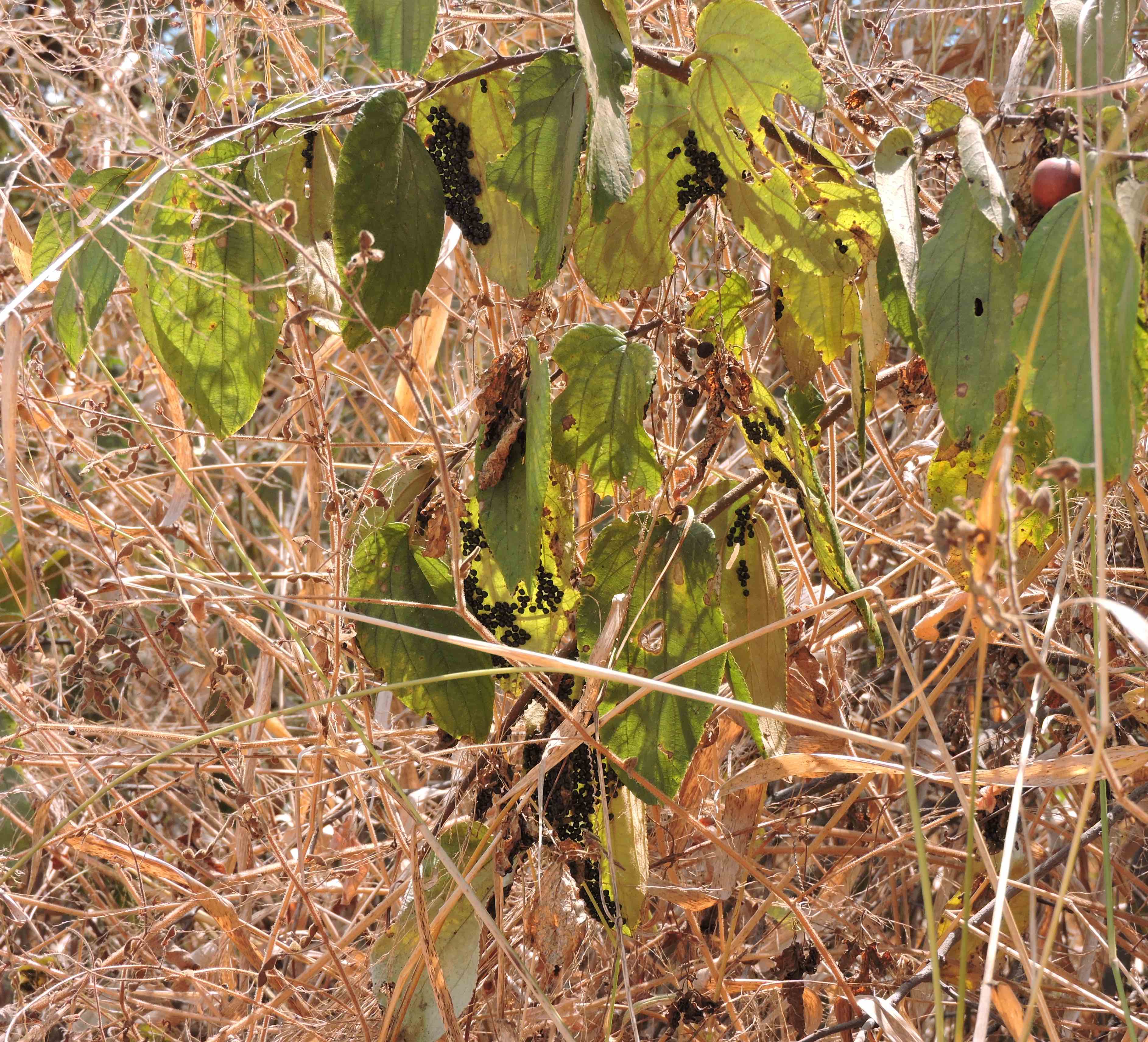 The tree where the bugs can be seen aggregated on its leaves.