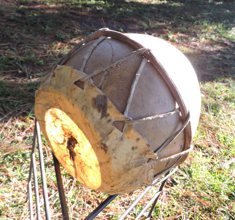 DSCN5320 copy ← Previous Next → The contraption has a waxed leather string in the middle that when fingers slide through it produces a grunt that is amplified by the box that mimics a call by a jaguar!