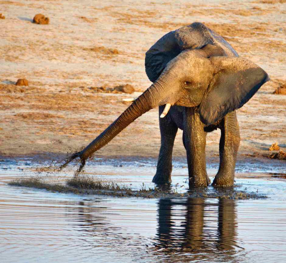 A youngster frolicking and drinking.