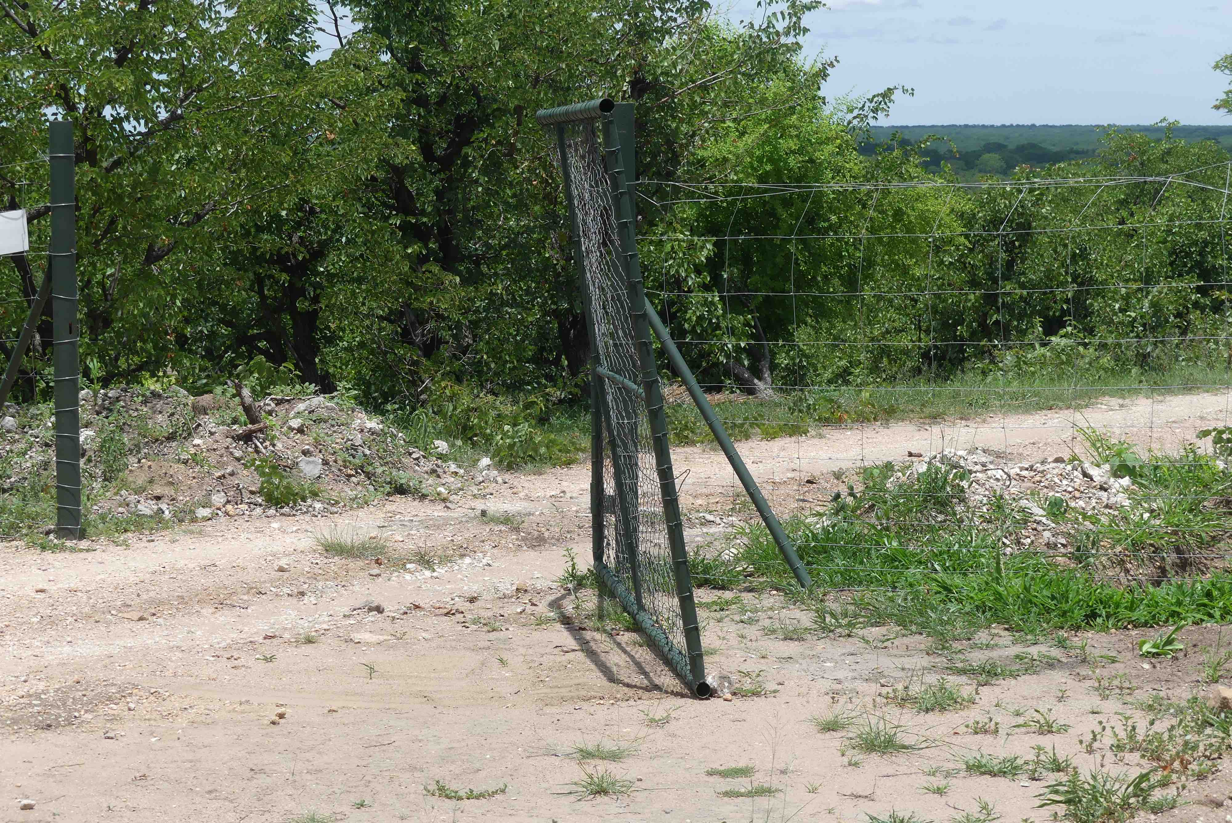 We had some nocturnal excitement on our first day. After midnight Flori and her boyfriend Giacomo (new at camping in Africa) were rudely awakened by very loud banging noises coming from the ablution area. The following morning a large hole was found in the fence through which an elephant had entered the enclosure, probably in search of clean water. His adventure got interrupted by the appearance of the camp attendant that stopped it from doing more damage. The elephant retreated, not through the entry hole but crashing the gate!