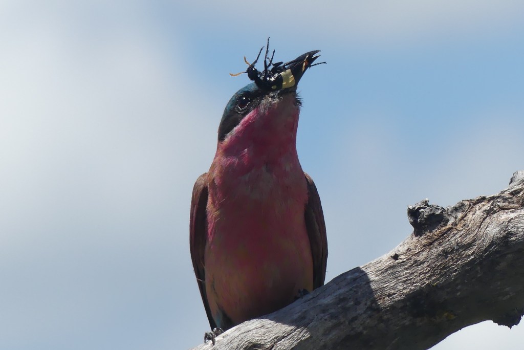 We needed to work hard to find large game but luckily had more luck in the bird department. We were able to watch and photograph a shaft-tailed wydah, a bird that we had not seen for years. We also watched several bee-eaters, rollers, and orioles, among other small birds. We were happy to see several groups of ground hornbills, including one feeding their young at a nest.