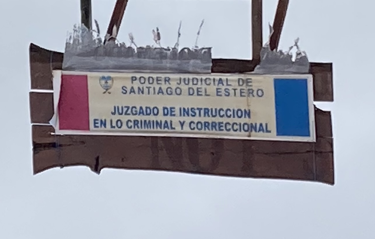 I can more or less translate the sign: “Santiago del Estero Judiciary. Criminal and Correctional Magistrate’s Court”. The reasons for its special orientation are, however, the subject of debate!