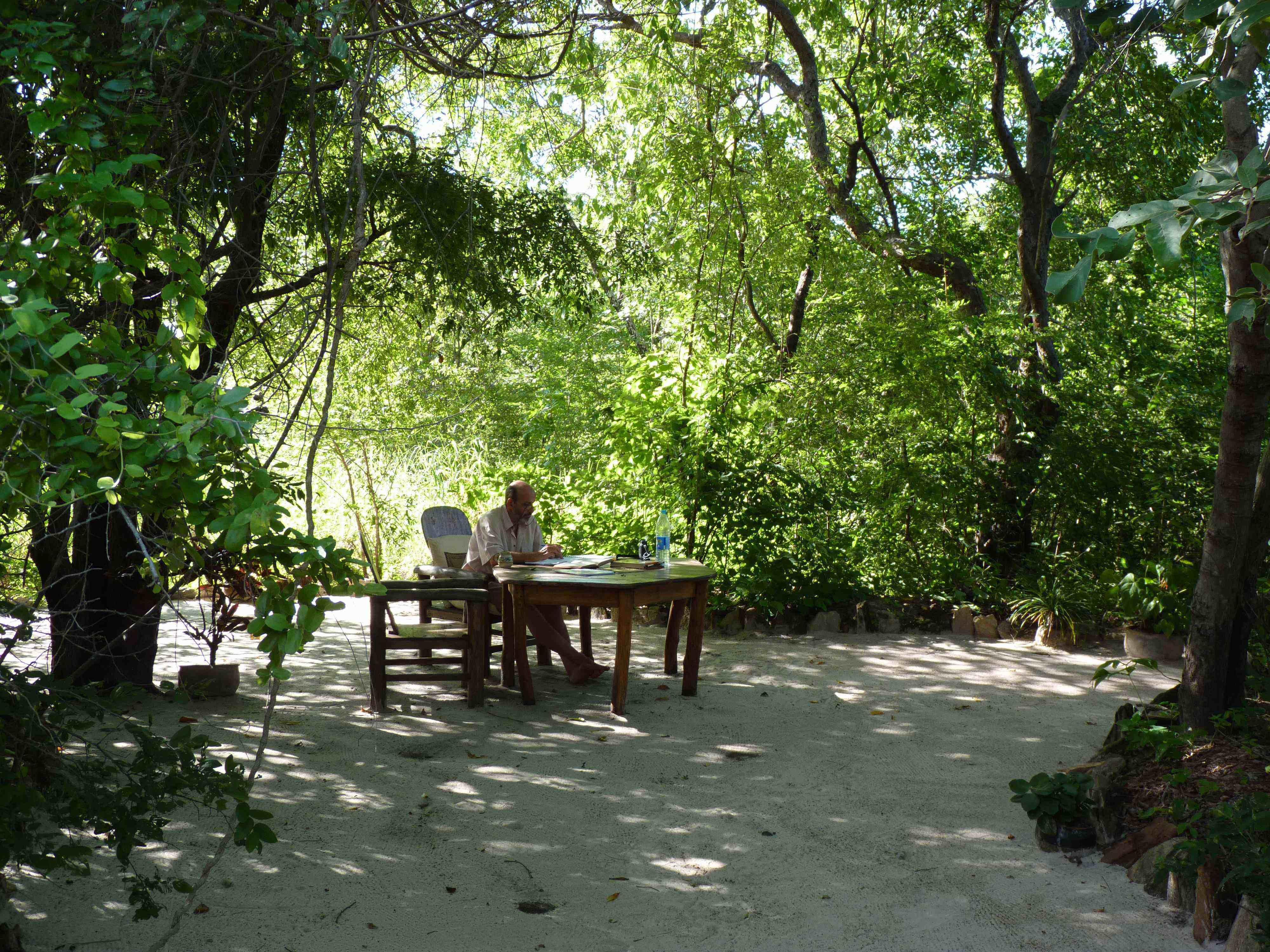 The bushsnob living up to his nickname and pretending to write something interesting in the bush at the beautiful Nkwichi Lodge in Mozambique. (see http://www.nkwichi.com/)