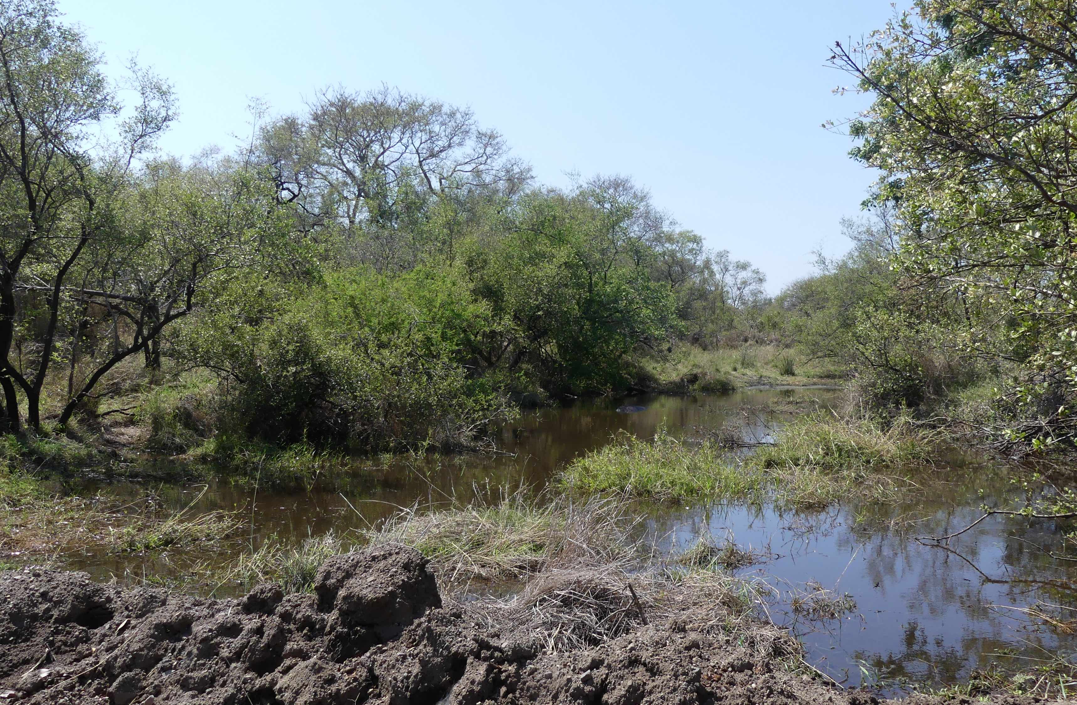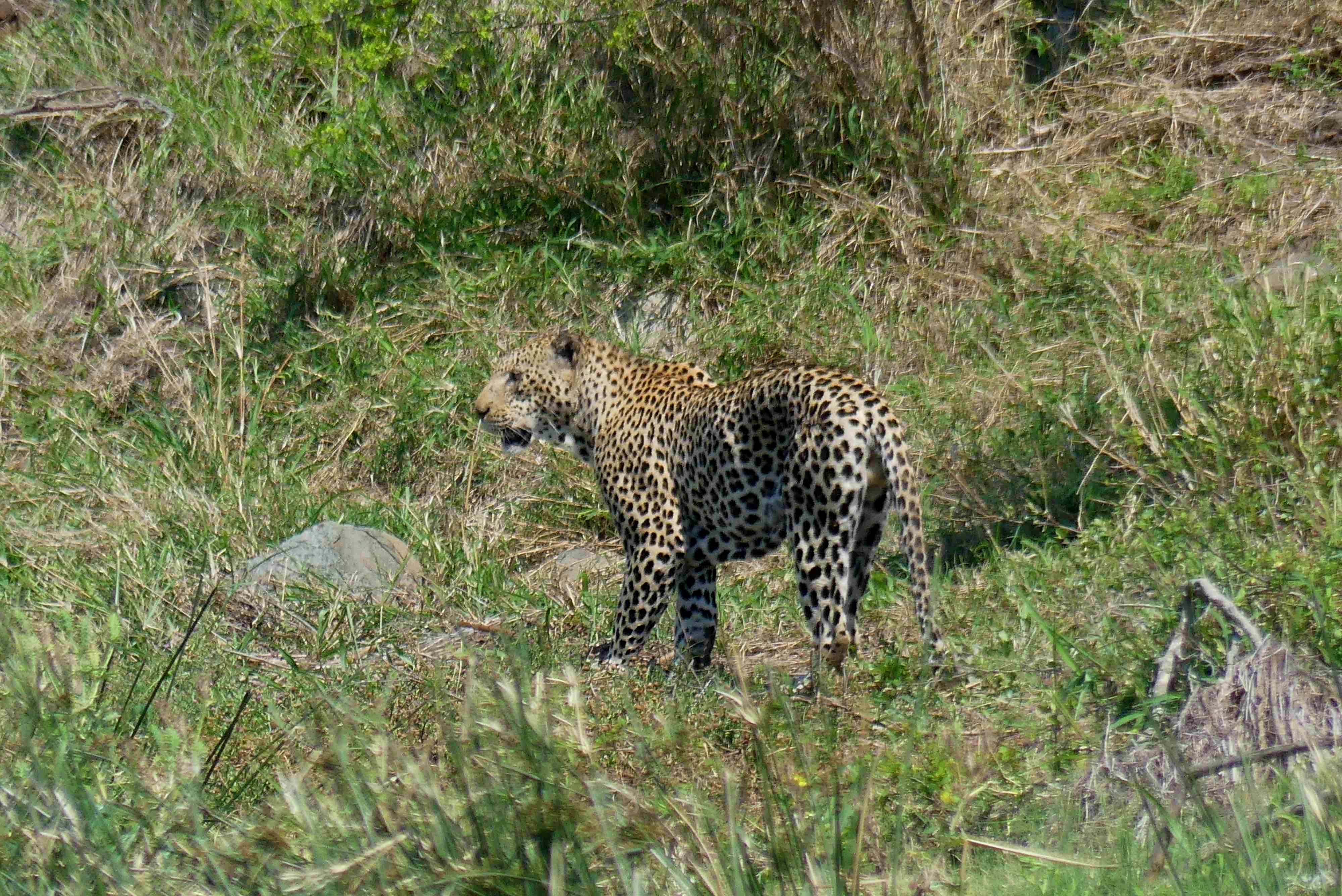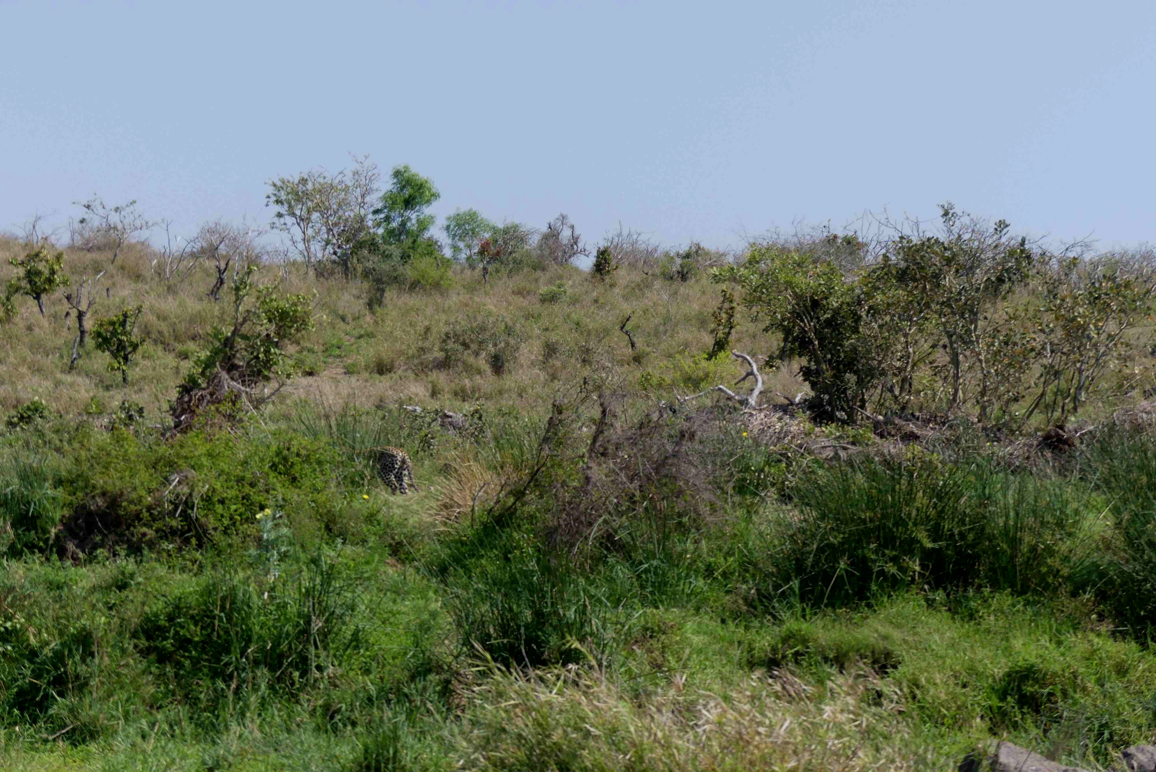 Then, as it usually happens, when you are not ready, a leopard appeared! A large male walking leisurely following the course of the stream and marking its territory as it went. I grabbed the camera and shot to the moving feline that was walking through the thicket abot 50m from us and managed only a view of its rear end!
