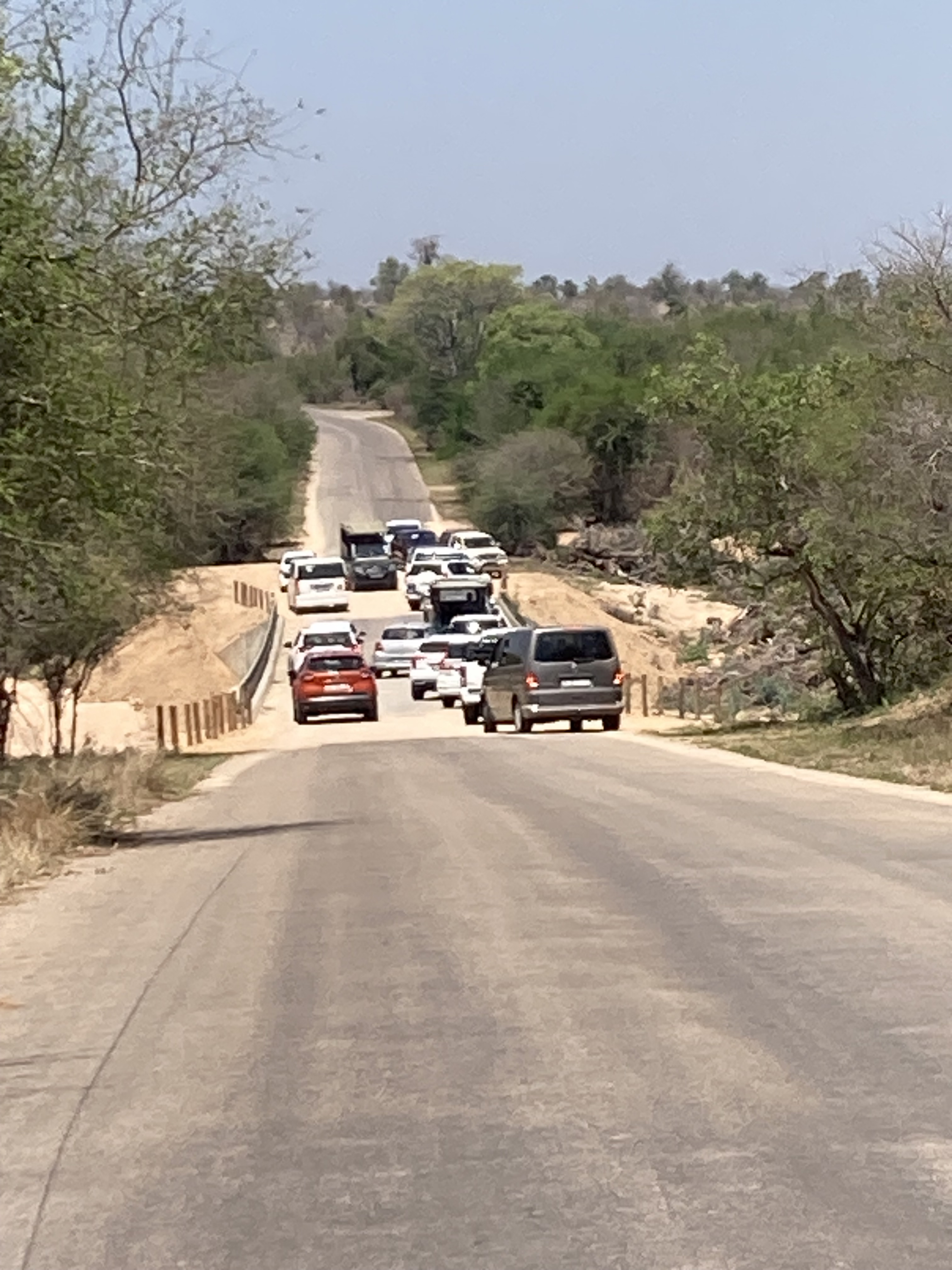 At the KNP most visitors follow a clear movement pattern. By about 18 hours they are preparing their braai (barbeque). They eat and go to bed early so, by the following morning they get up very early and go out for game drives or to move to another camp. We saw car queues waiting for the gate of the camp to be opened!
