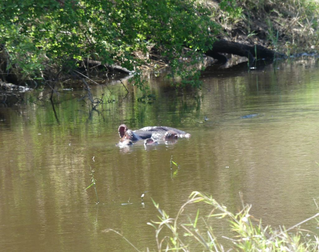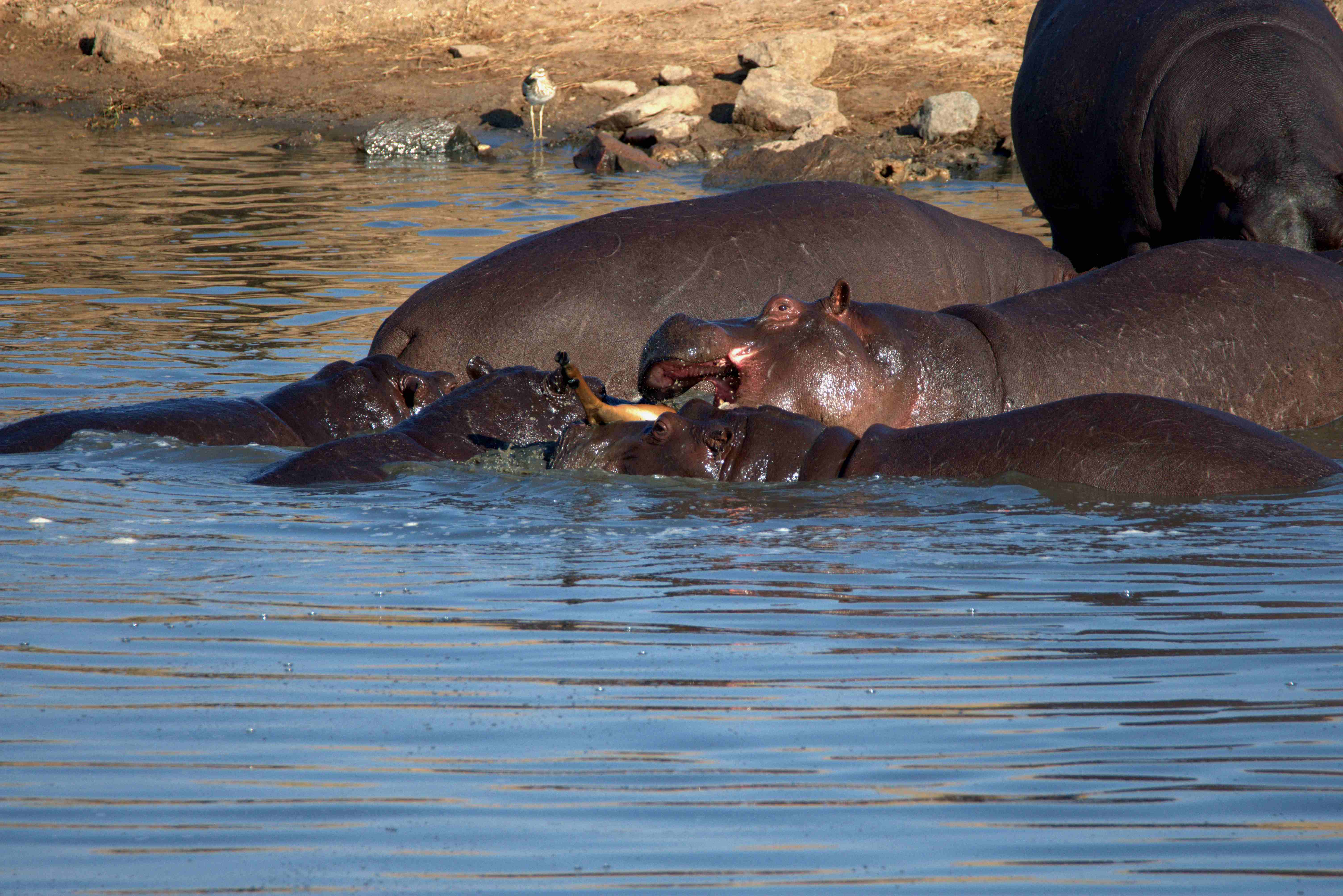 I had just put the water to boil when one of the ladies came running to tell me that “the painted dogs have chased an impala into the dam and a crocodile ate it!”. Cursing my coffee idea and after shouting “wild dogs” to my frozen wife (she came in a flash, happy to leave the cold tent!), I run back to the dam. As expected, I could not see anything apart from the usual pod of about twenty hippos that were still where I had seen them earlier.