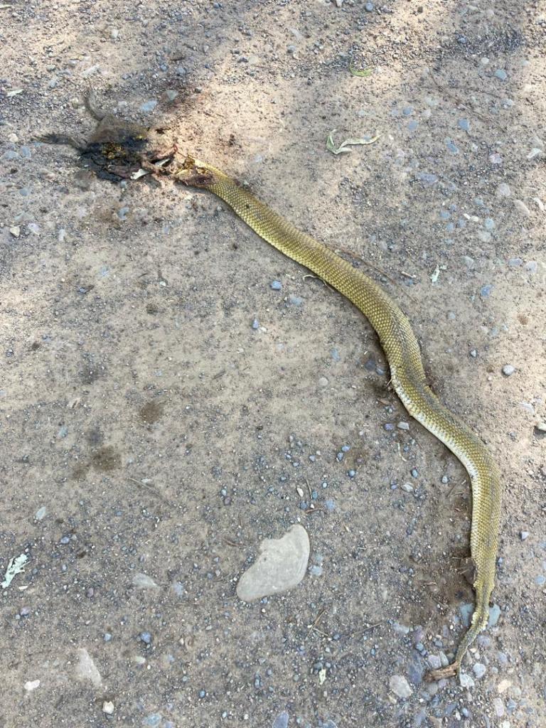 This morning, while walking around the neighbourhood we found a toad-eating snake that had caught a large toad. Unfortunately, it was killed by a car while crossing the road.