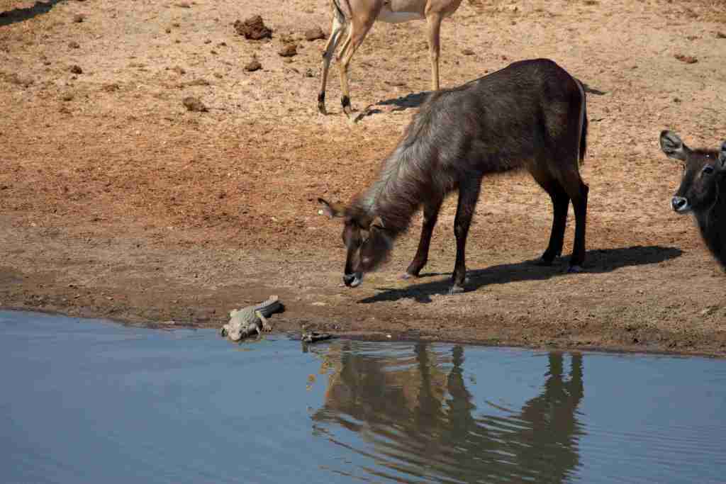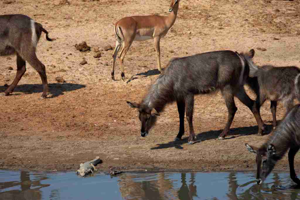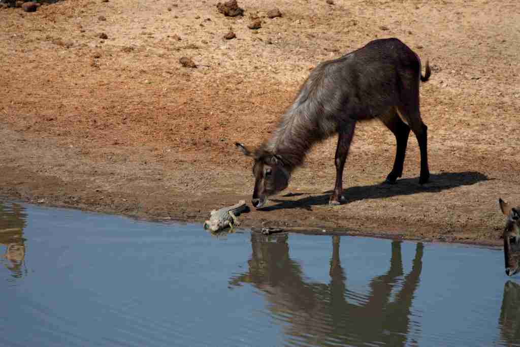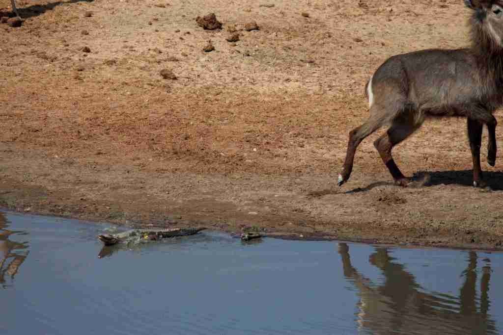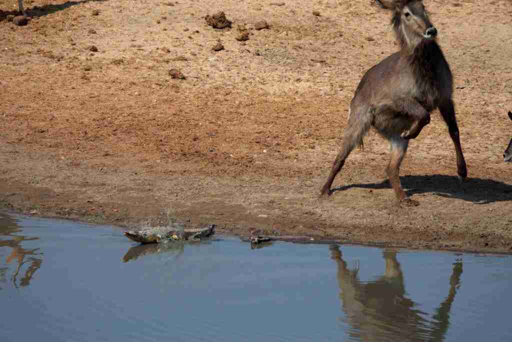 The following sequence of the encounter of two youngsters, a crocodile and a waterbuck, was captured by Julio A. de Castro and I believe that it does not need any explanation to see the funny side!