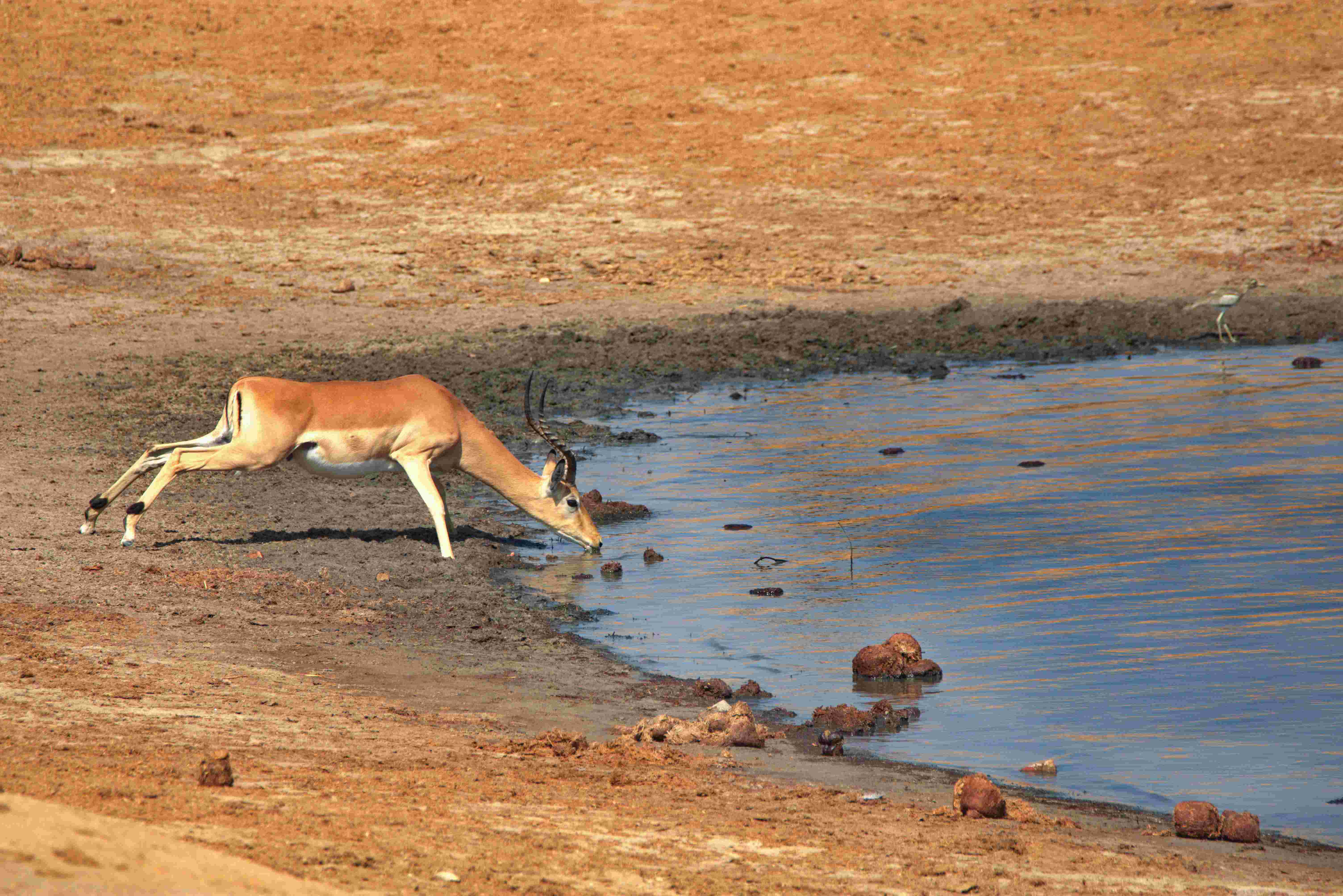 Then, the amazing thing happened. As if a second take was needed by some nature director, galloping sounds came from the hill behind the camp and another female impala jumped into the dam again and started to swim away from the dogs. I managed to get the camera in video mode and register the last seconds of the impala’s life as well as the amazing sight that it was calm again a few seconds after the event! (please note that it shows a scene that some may find too strong!).