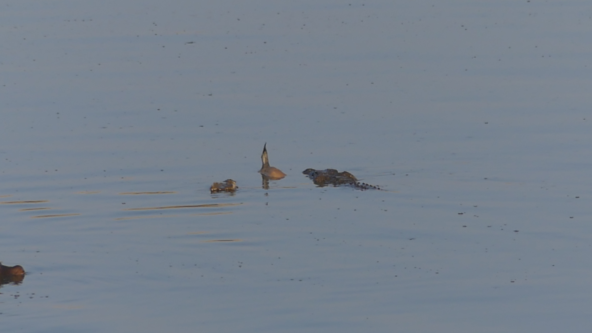 Following the episode I narrated in the earlier post, after losing the second impala to the crocodiles, the painted dogs went back to the hill behind our camp and we did not see them again. This did not really matter to us as the action, as we expected, had now moved to the dam!
