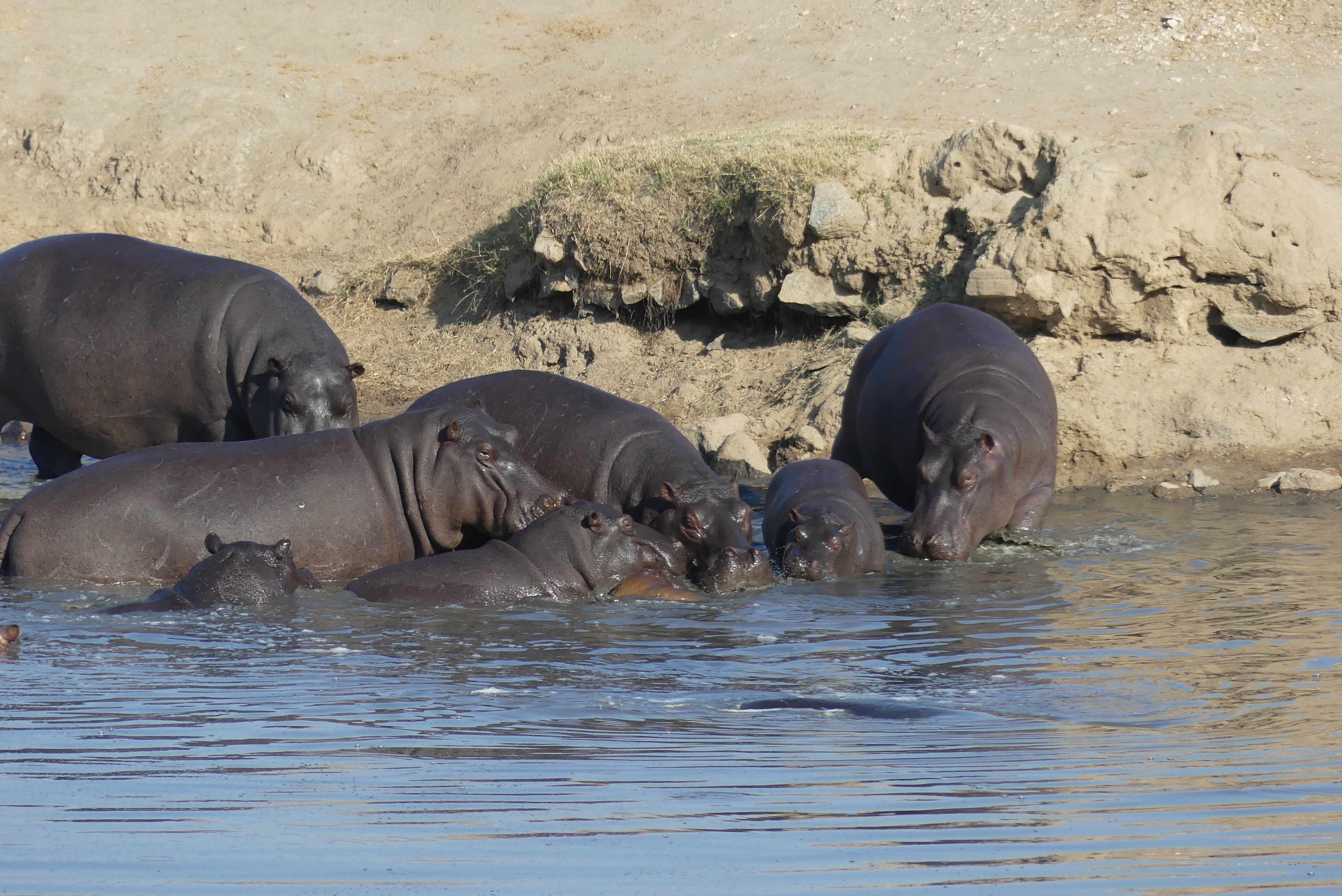 Hippos of different ages were observed eating various soft tissues and also attempting to eat the impala legs, I believe, without luck.