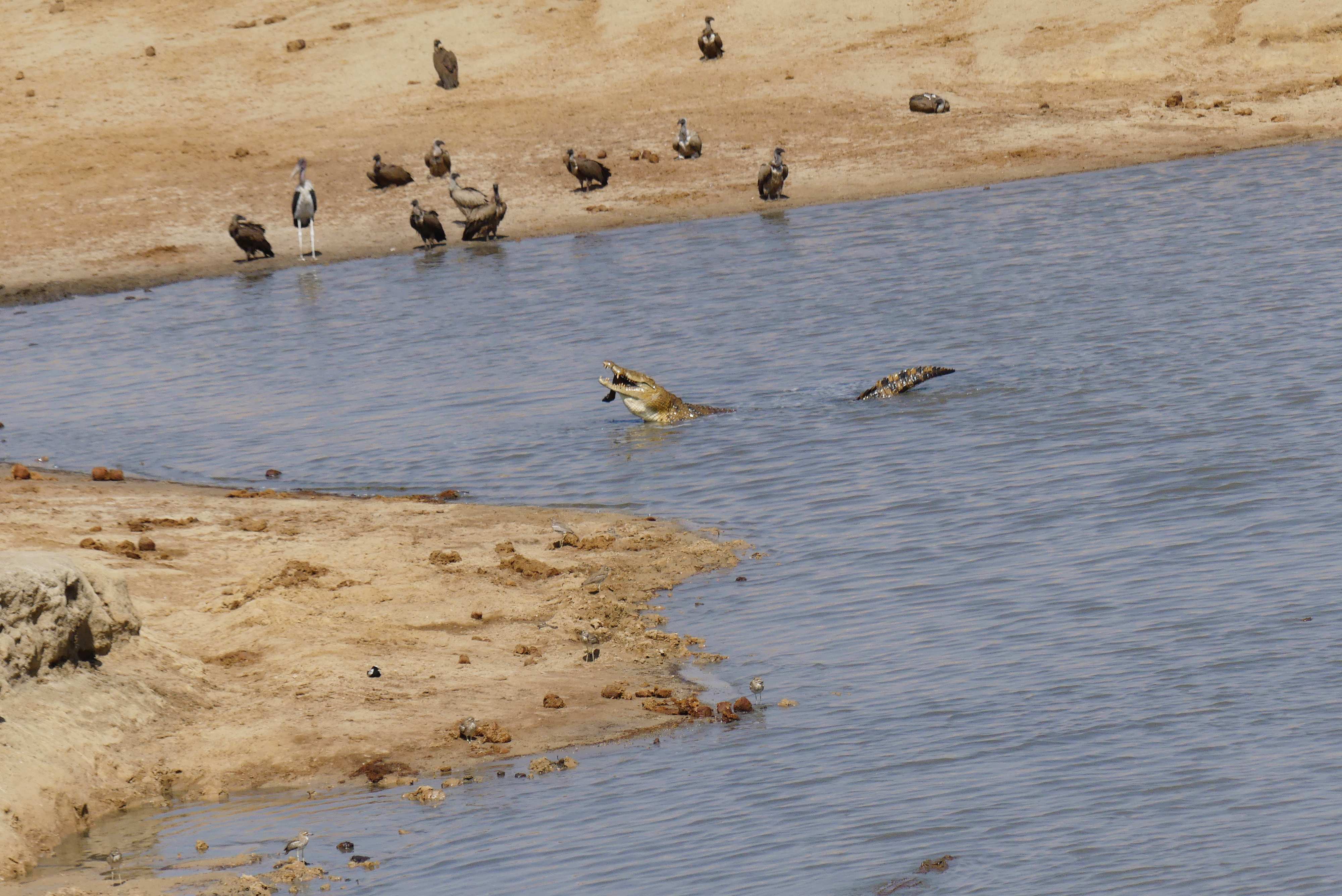 I had described earlier in a series of posts what happened at Masuma when the crocodiles catch one of the animals that come here to drink [1]. We did not need to wait for too long for the battle between crocs and hippos to begin.