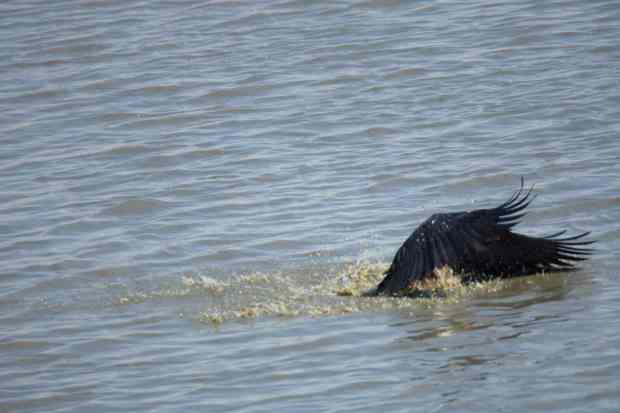 We did this, after seeing great pictures in international wildlife magazines, thinking that the pictures were within our reach. We attempted it a few times with our cameras that were not electronic like today and that required that we took our film cartridges for developing after the event. What we found was not impressive! We either had a dead fish floating on the water or a splash, the anterior or posterior half of an eagle but we could never capture the actual sequence.