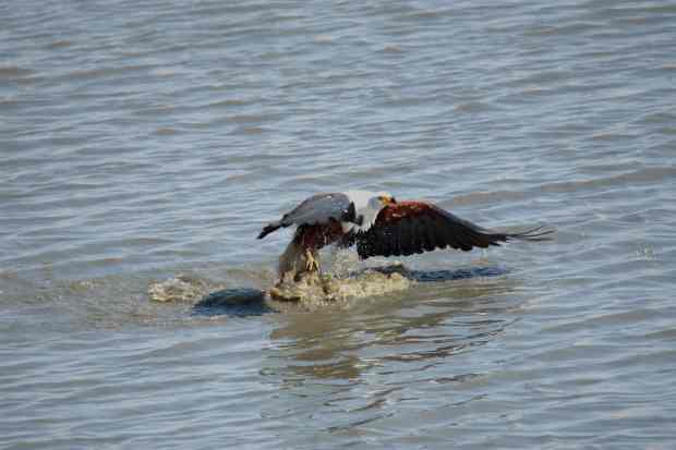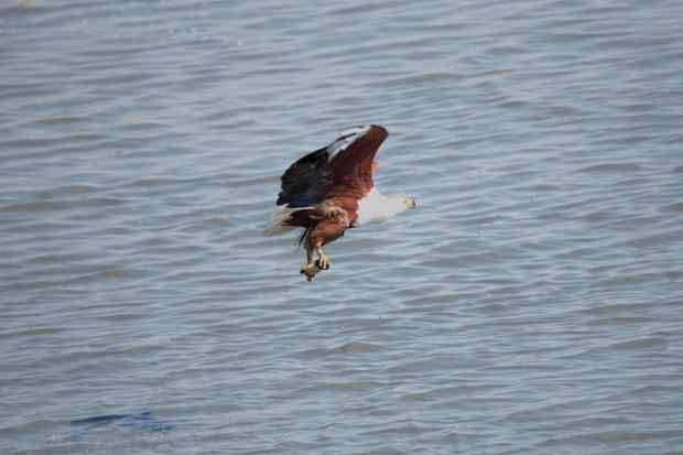 That is why I am writing this post as, during our visit to Masuma in Hwange National Park, there was a resident fish eagle that attempted to pick pieces of the dead impala as well as remains of dead fish that were floating about in the dam. Remembering my earlier Kenya experience, I decided not to attempt to take pictures to the eagle so, the following sequence was captured by my son that did not have a bad past experience on his shoulders that would impair his ability to press the shutter in a timely fashion
