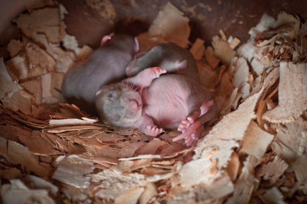 Giant rats are capable of reproducing up to ten times a year with a gestation period of 27 to 36 days. One to five young are born at the same time as they are fed by the eight mammary glands that the females have.