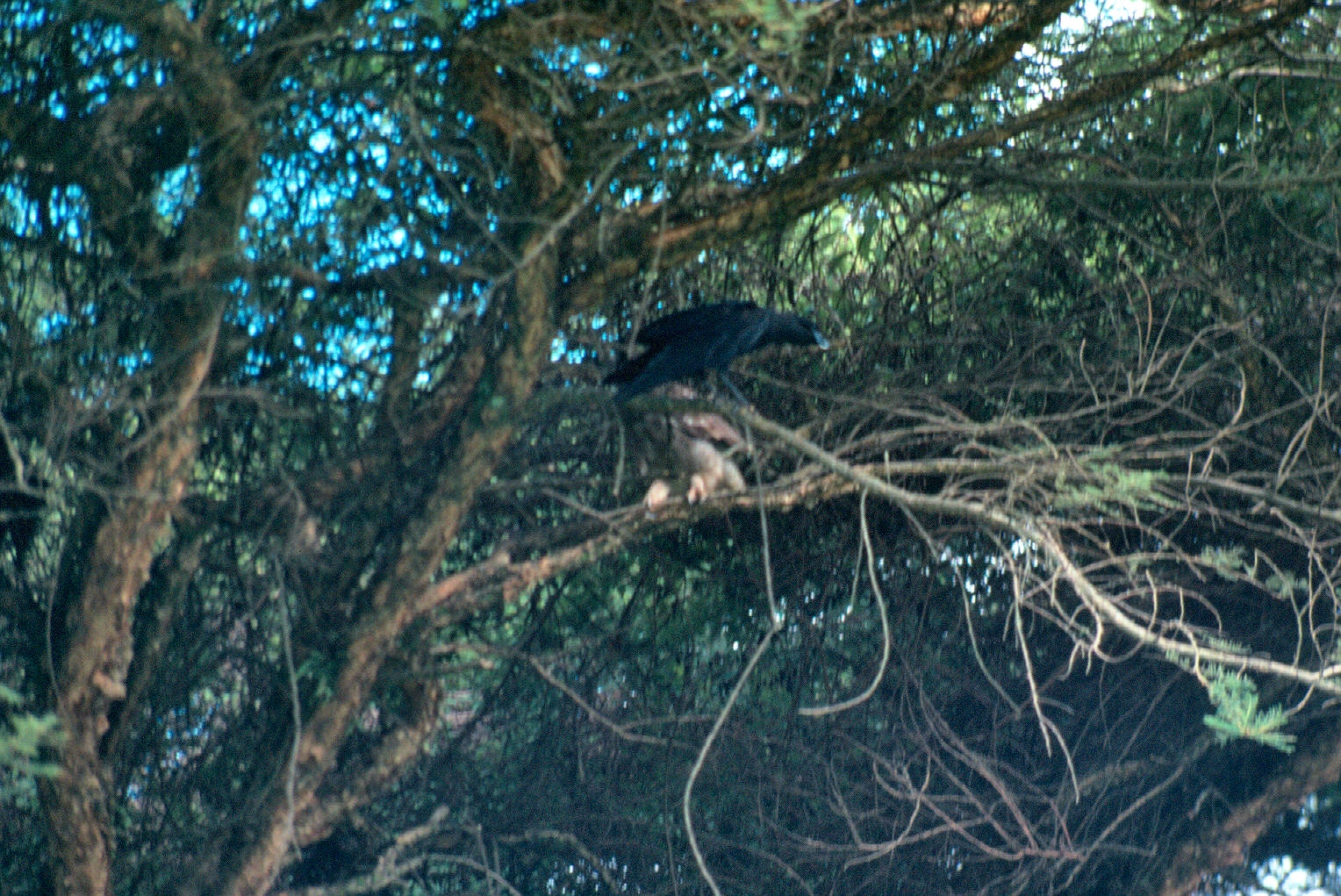It was a Saturday afternoon in September 1989, I had just finished working and I was walking back to our bungalow when I saw about four Thick-billed ravens (Corvus crassirostris) flying about around an acacia tree that stood alone in the park of the laboratory.