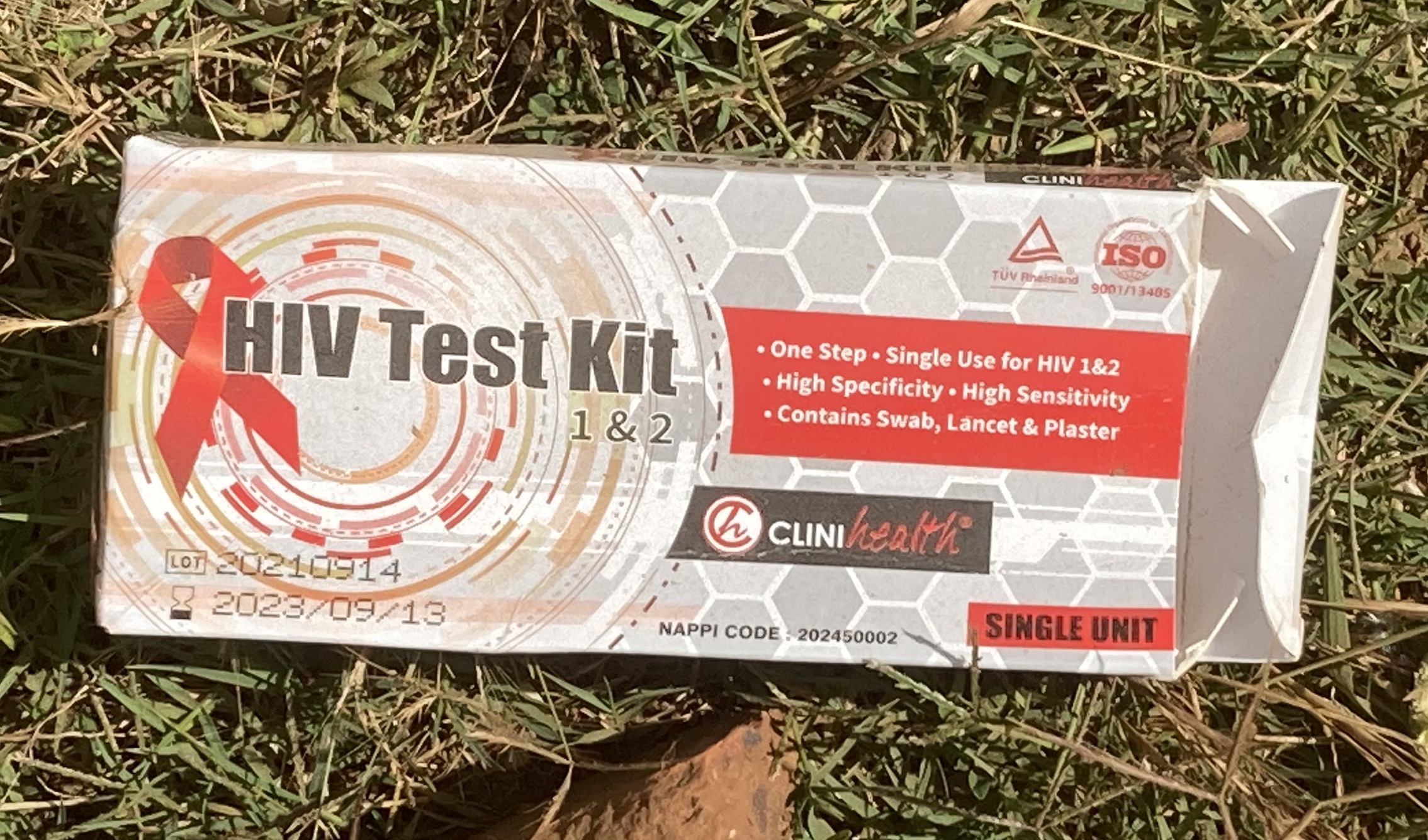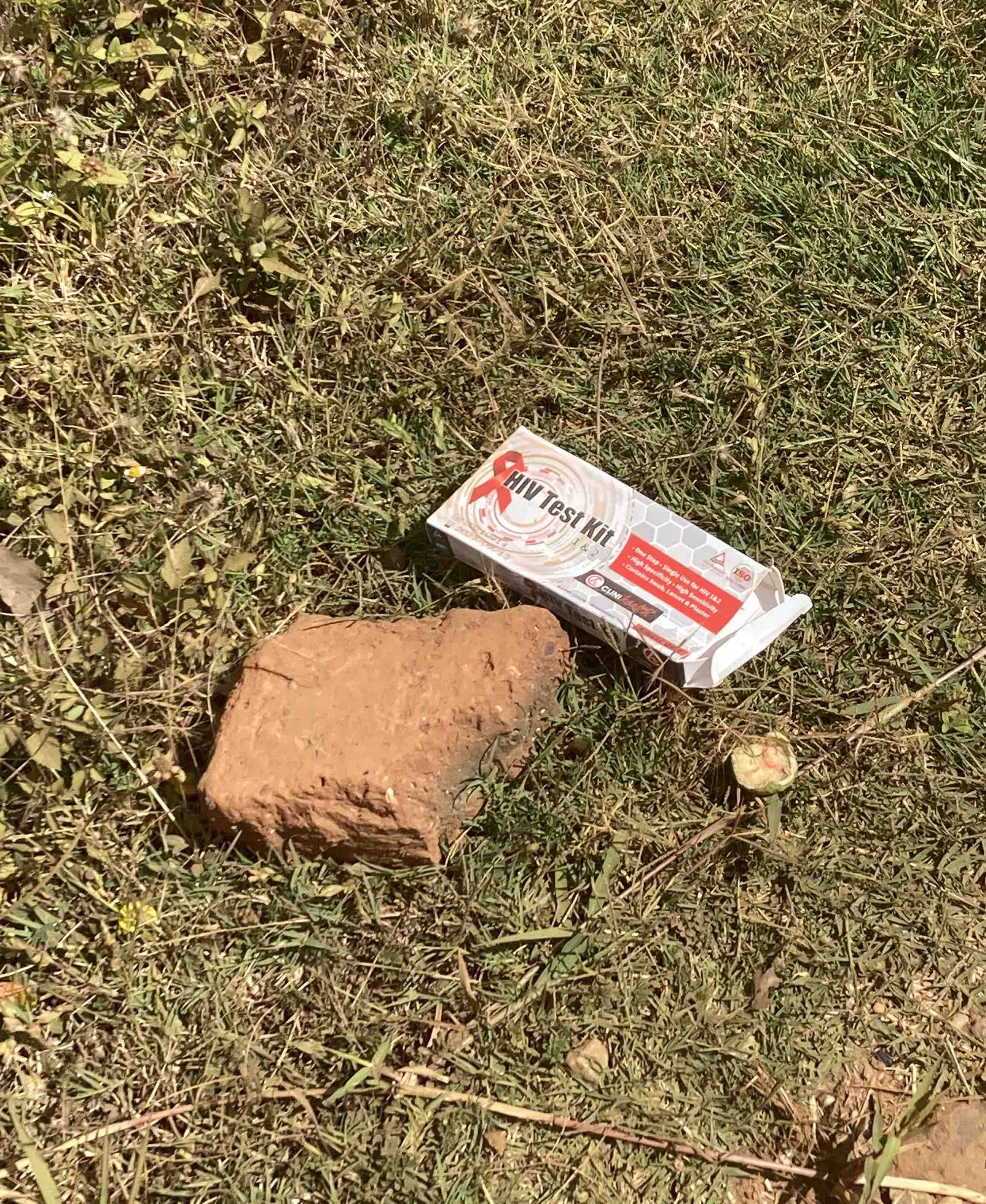 While walking in our Harare neighbourhood I spotted this discarded package that, on close inspection, was a HIV Test Kit.