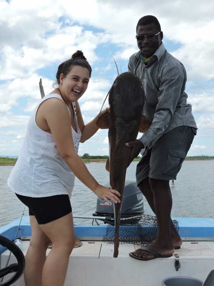 Flori and Godfrey hold the first “family” vundu.
