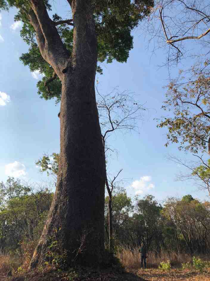 One of the large trees at Kasanka. Please note Frank near it. Pic by Lola Castro.