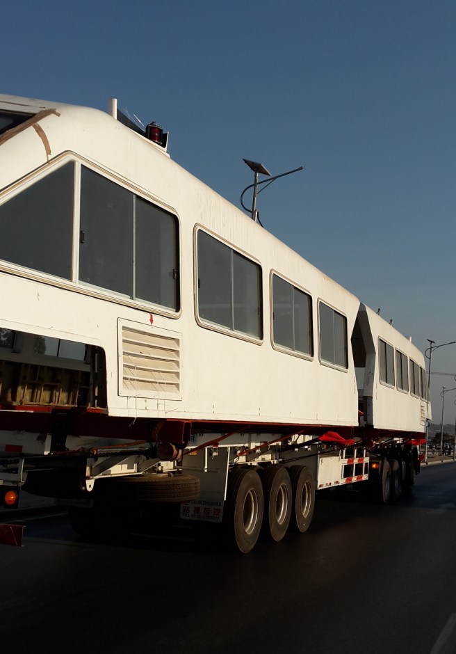 A view of the two boat cabins being transported. Pic by Mabel de Castro.