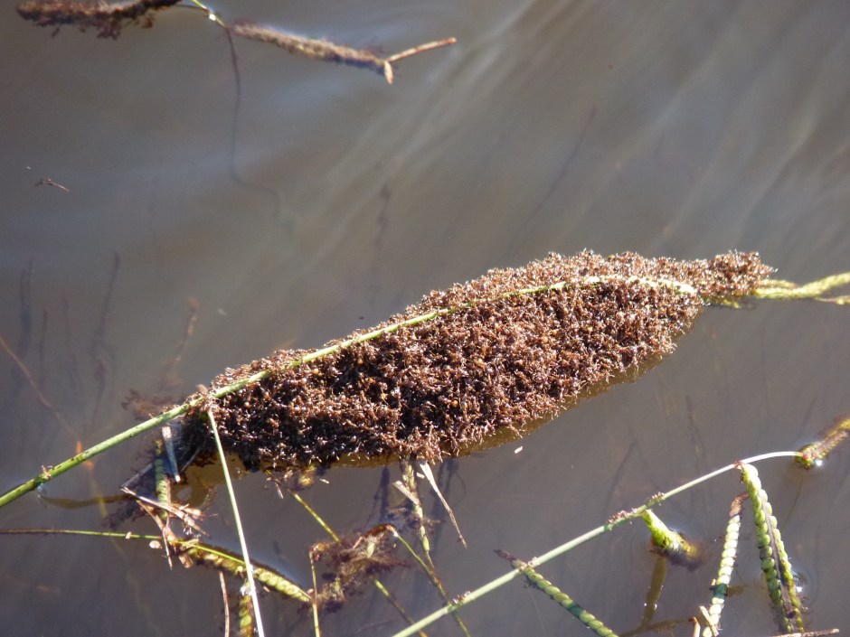 P1150843 copy A larger group of ants anchored to a stem of grass. This is also shown in the video to appreciate their movement.