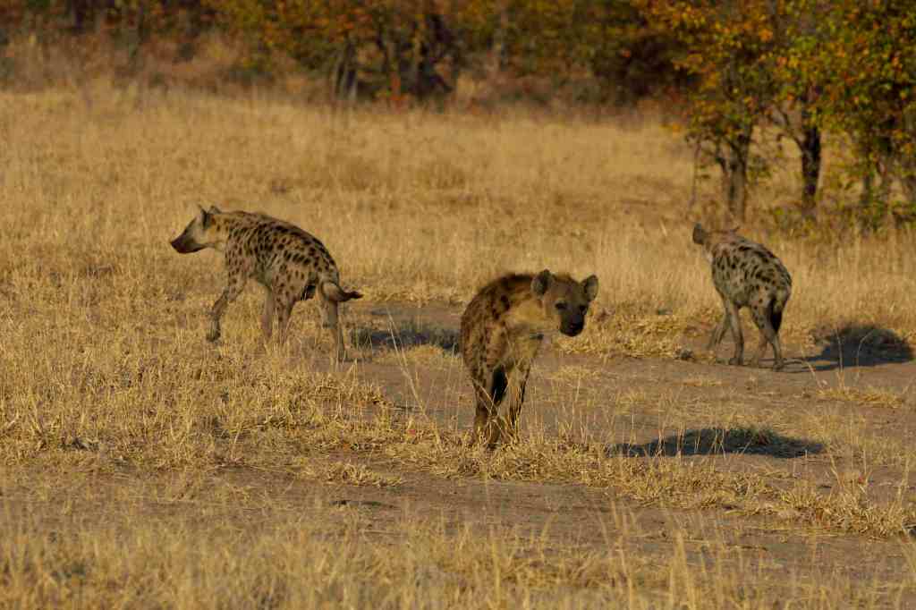 One of the hyenas was probably carrying a chunk of meat and moving away from us never to be seen again. The rest of the adults continued walking and they tolerated our presence. We have had literally hundreds of daylight encounters with spotted hyenas over the years and they have always been rather unconcerned by our presence, keeping a considerable distance from us, either on foot or inside our car.