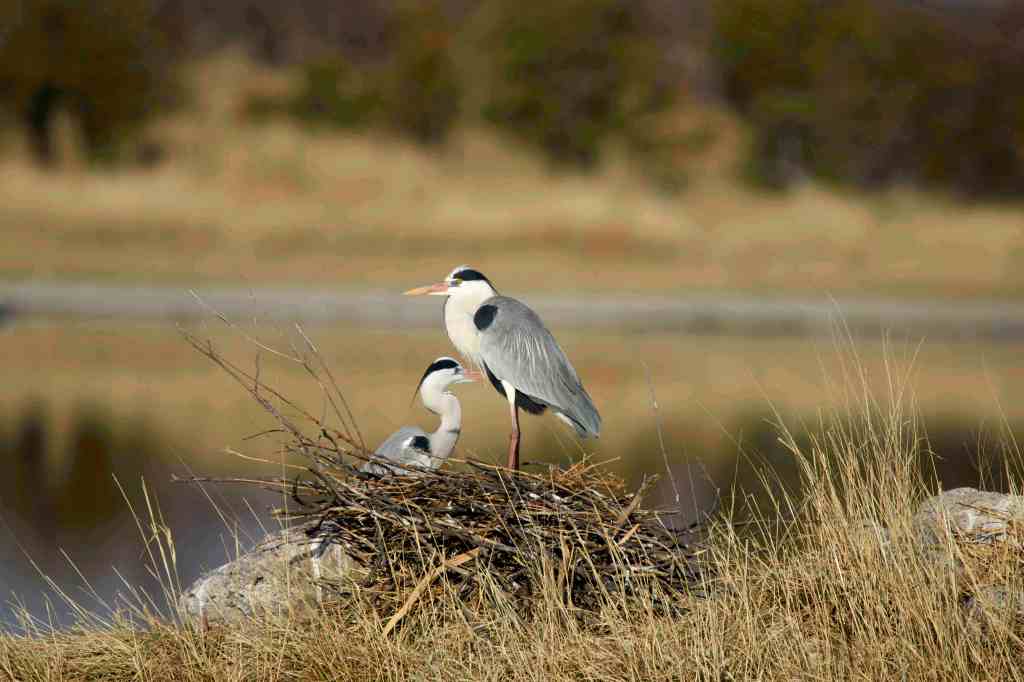 We then continued our journey to the Salt pan area and found some interesting water birds such as grey herons and stilts, among others. There were a couple of dozen grey herons at the dam and we saw at least two pairs nesting there.