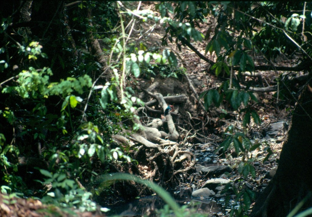 Although work postponed the visit, we eventually made it and looked for the bird, now alert to detect the salient features of the different species. We found it but it was not easy to approach because of the terrain. Despite this, after watching it for a while, we both agreed that we were looking at the unlisted, Blue-breasted kingfisher, its bright blue breast unmistakable.