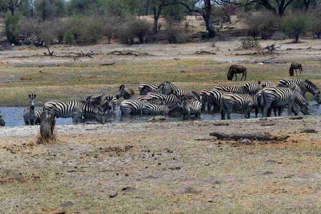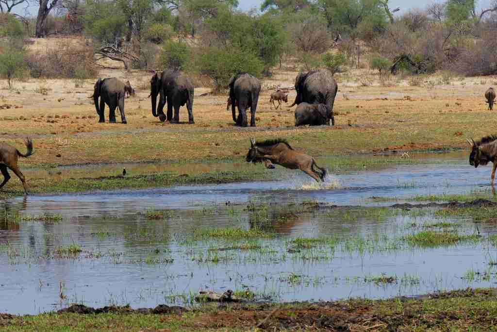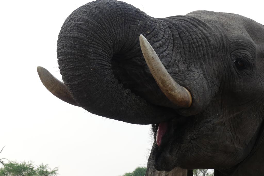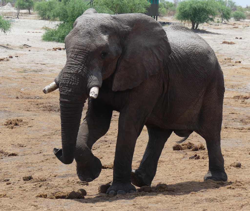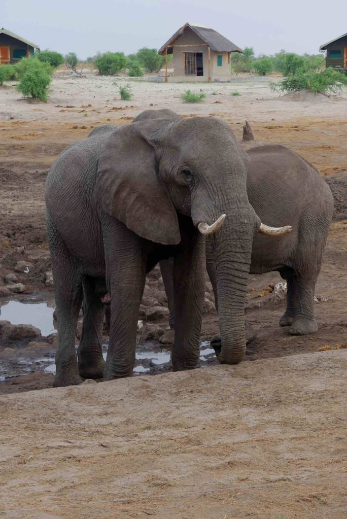 The entry sign says “Elephant Sands. Where elephants rule”. I confirm that this is true. The tented camp is built around a water hole that seems to be on an elephant highway between Botswana and Zimbabwe with little available water. We stayed in one of the tents that are built on stilts. It was very roomy and comfortable, offering an unobstructed view of the elephants at the hole.