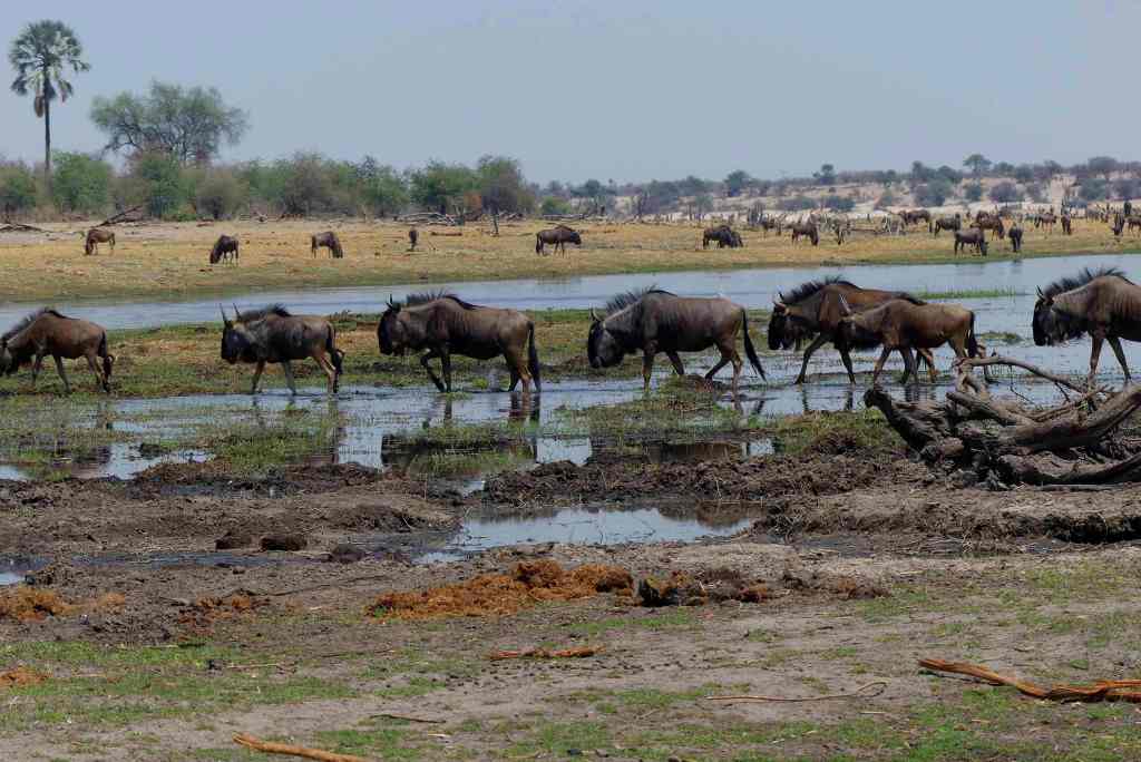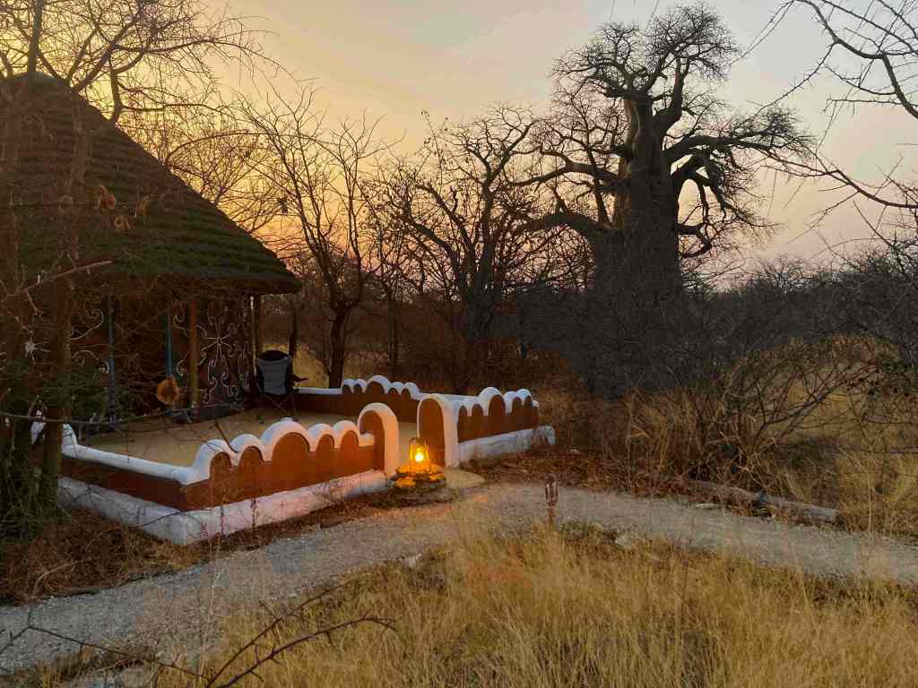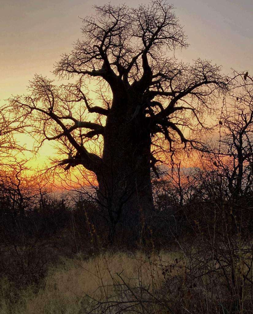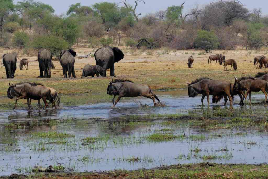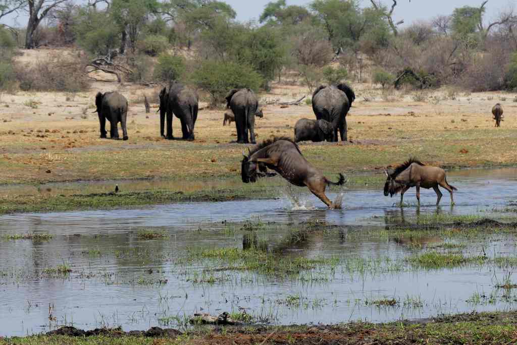The entry sign says “Elephant Sands. Where elephants rule”. I confirm that this is true. The tented camp is built around a water hole that seems to be on an elephant highway between Botswana and Zimbabwe with little available water. We stayed in one of the tents that are built on stilts. It was very roomy and comfortable, offering an unobstructed view of the elephants at the hole.