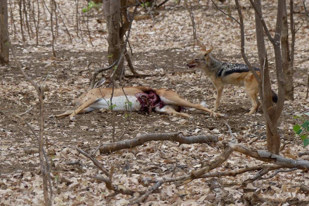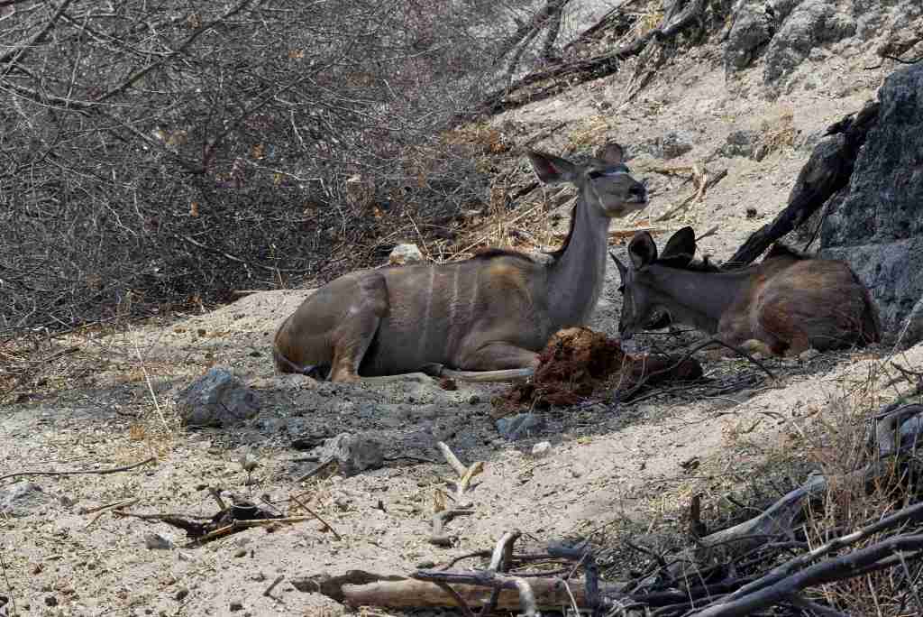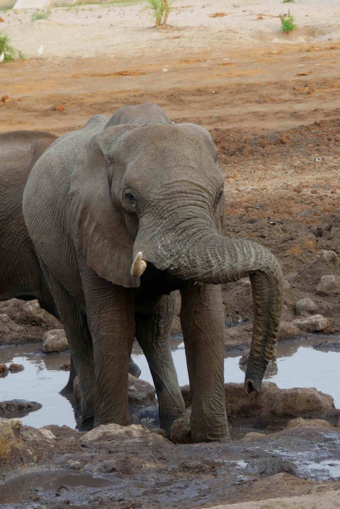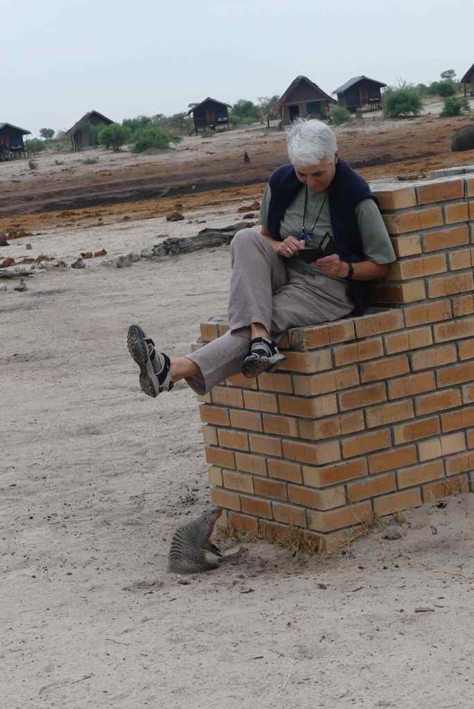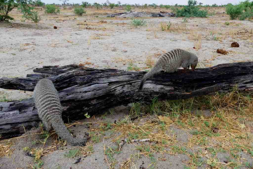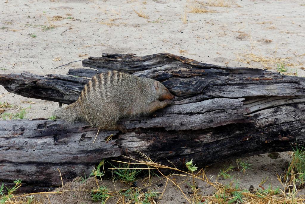 Late in the morning it started to rain, providing elephants with much needed water and us with some respite against the intense heat. Unfortunately, three busloads of loud tourists also arrived! We decided that we were going to stay away from the main lodge and walk around. The two somehow tame banded mongooses followed us during our walk, searching for food and showing a high level of activity. We were warned that one of them was naughty and it could bite so we were careful. Despite this, the “bad mongoose” picked on Mabel (usually is me they pick!) and gave her some trouble!