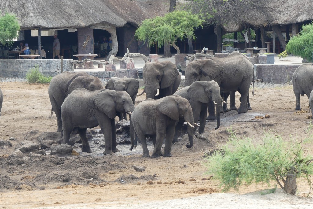 It is in the main lodge area, next to the water hole, that people congregate to watch the elephants at close quarters. The latter are a few metres away, only stopped from moving into the camp by an electric fence. There we had our meals. Unfortunately, the place was very crowded for our taste. On the positive side, to have elephants very near and great weaver birds’ activity (mostly ignored by the tourists) offered a compensation, somehow.