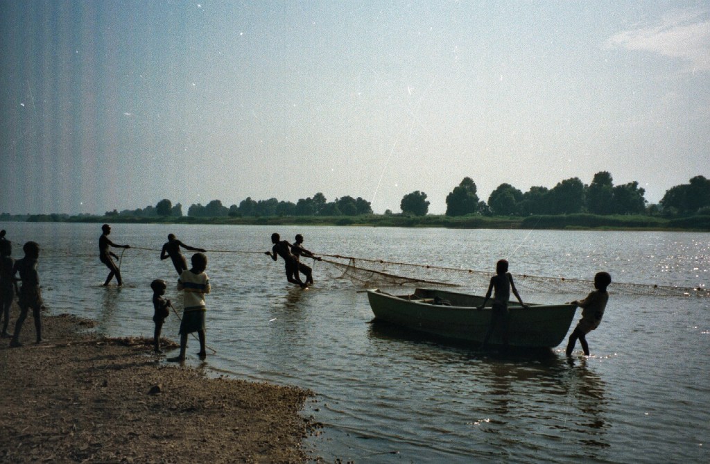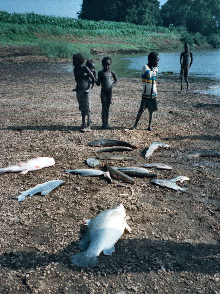 After a few minutes his trick seemed to work as Anders -again- got a mighty pull and our first –and only Nile perch- emerged. Not as large a monster as we expected but a rather babyish fish of about 5 kg that did not do much apart from letting itself being brought to the boat and immediately released as it was considered too small for the pot.