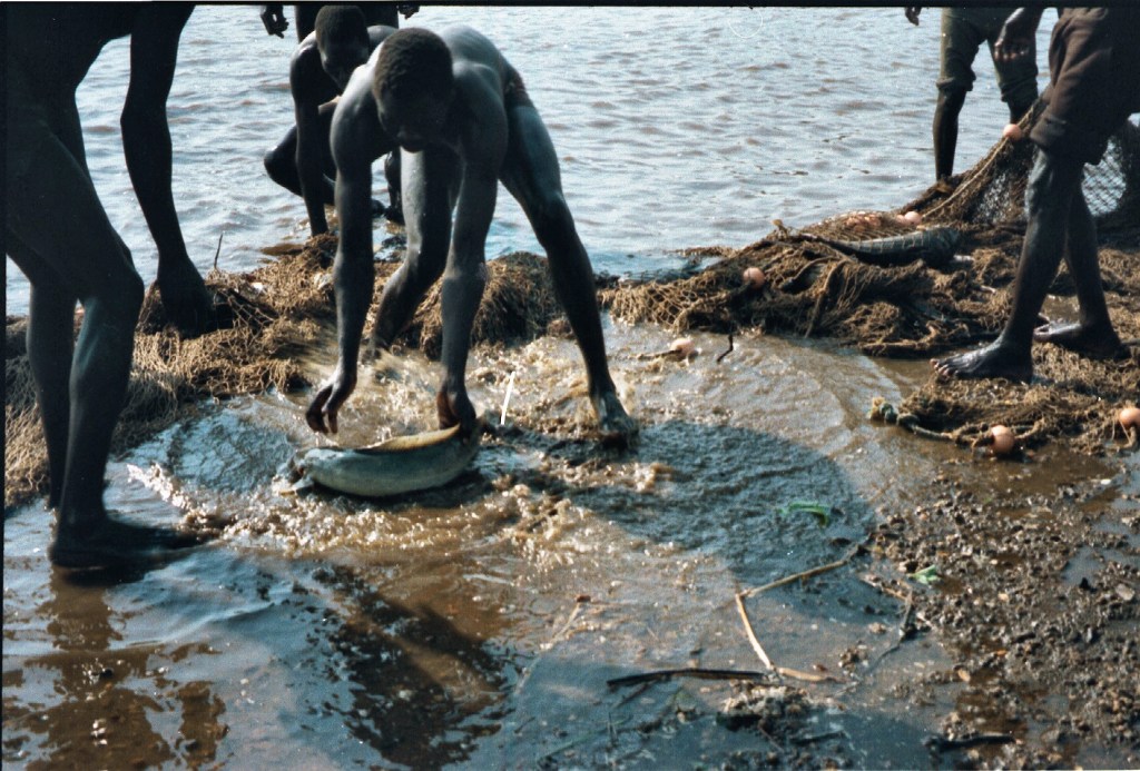 Once we had accumulated enough bait we moved to a spot where the large Nile Perch were known to live. There we baited large hooks fitted with steel trace and we threw our lines deep and waited. Not much happened and then we moved to another place where, again, our kapenta offers were ignored. Seen that we were getting rather impatient our skipper said: “I will call the fish” and without further explanation, removed his t-shirt and jumped into the lake!