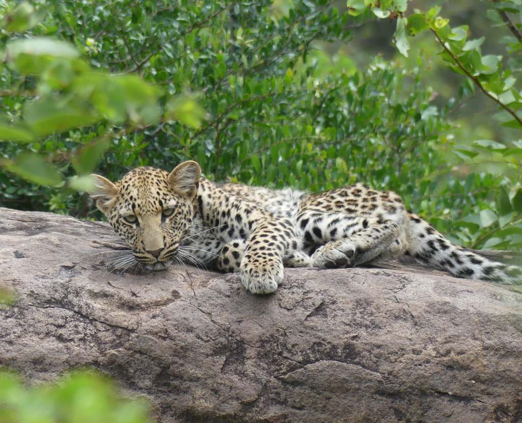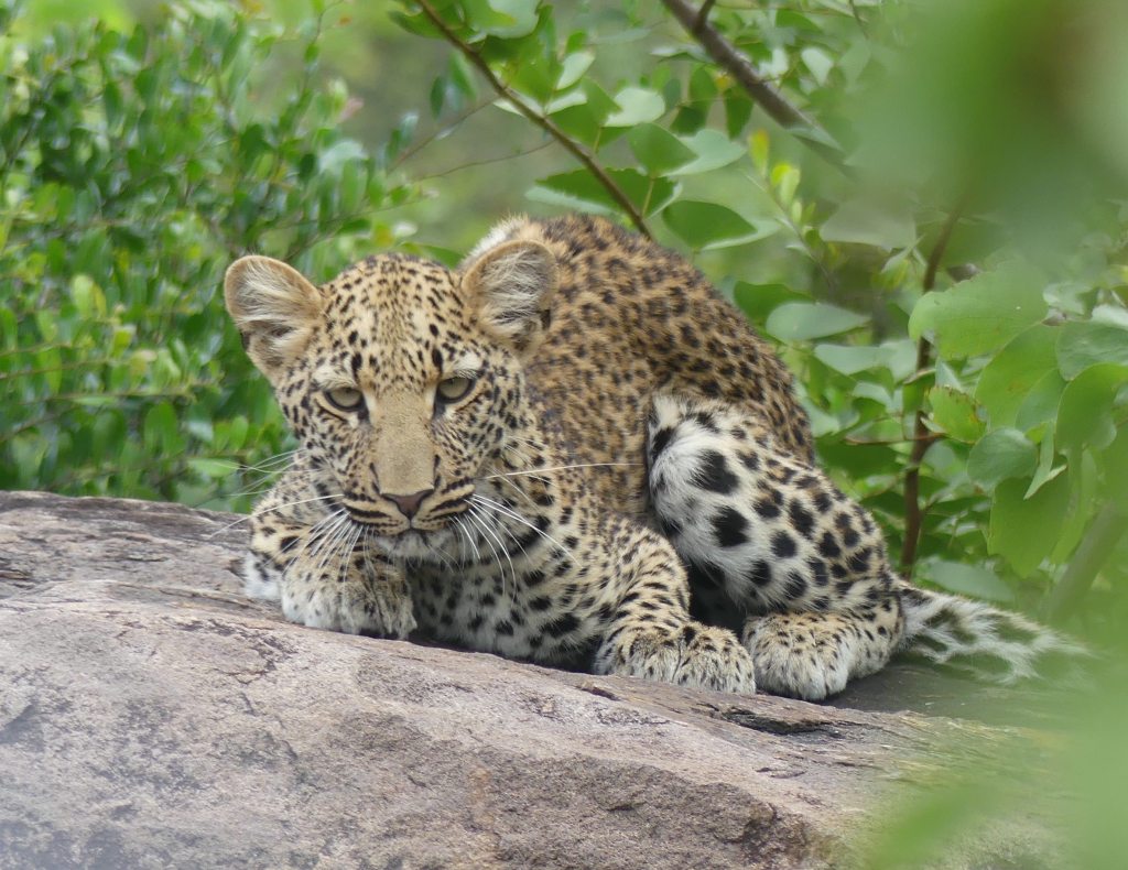 Jonathan was watching a female leopard with young cubs with all his equipment on the ready as the cubs played and the mother rested up a rocky outcrop. We learnt that it was the same female and after that encounter we saw her a few more times. The trick was to find Jonathan’s green car when driving through the general area where the leopard dwelled! It was clearly easier than looking for her!