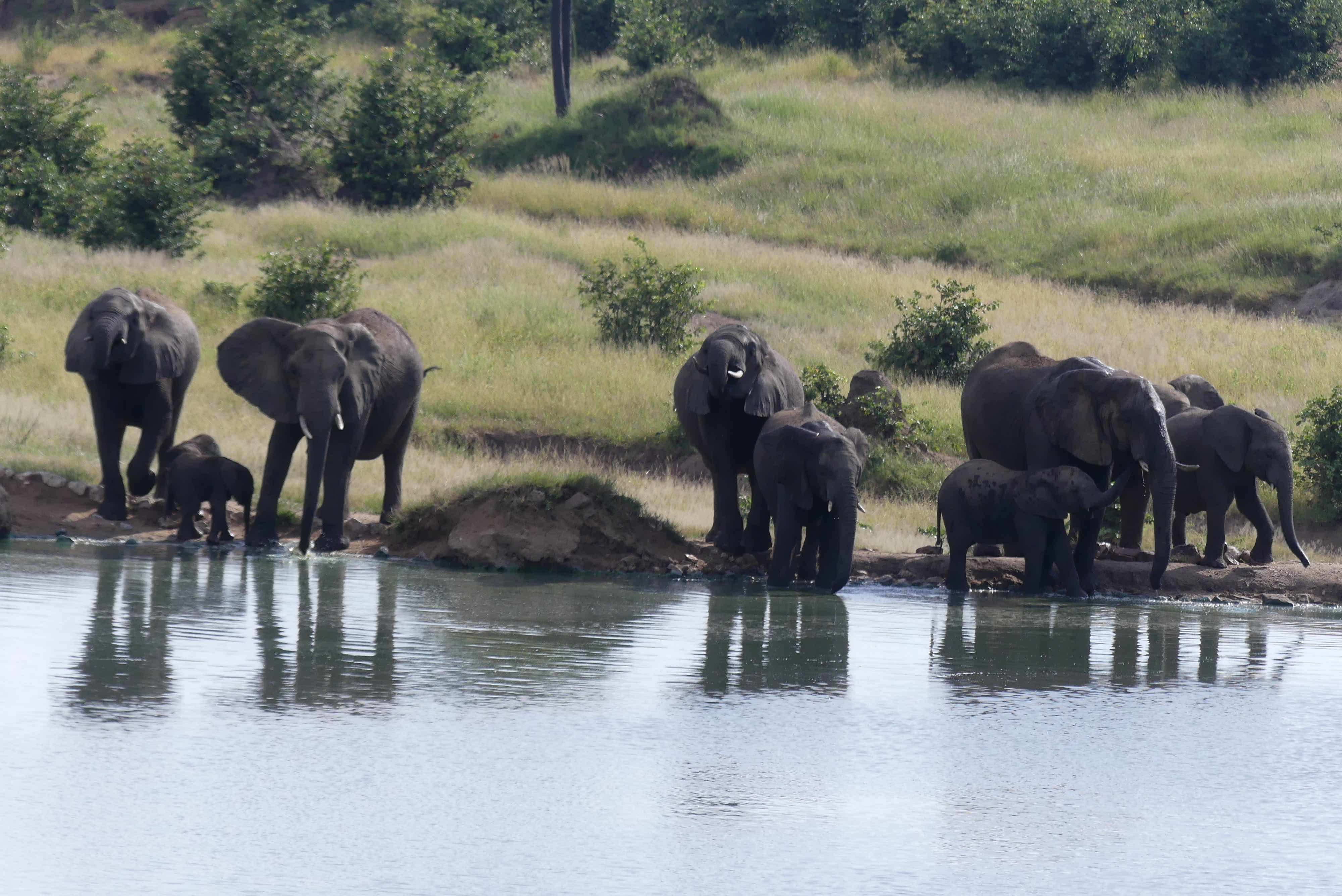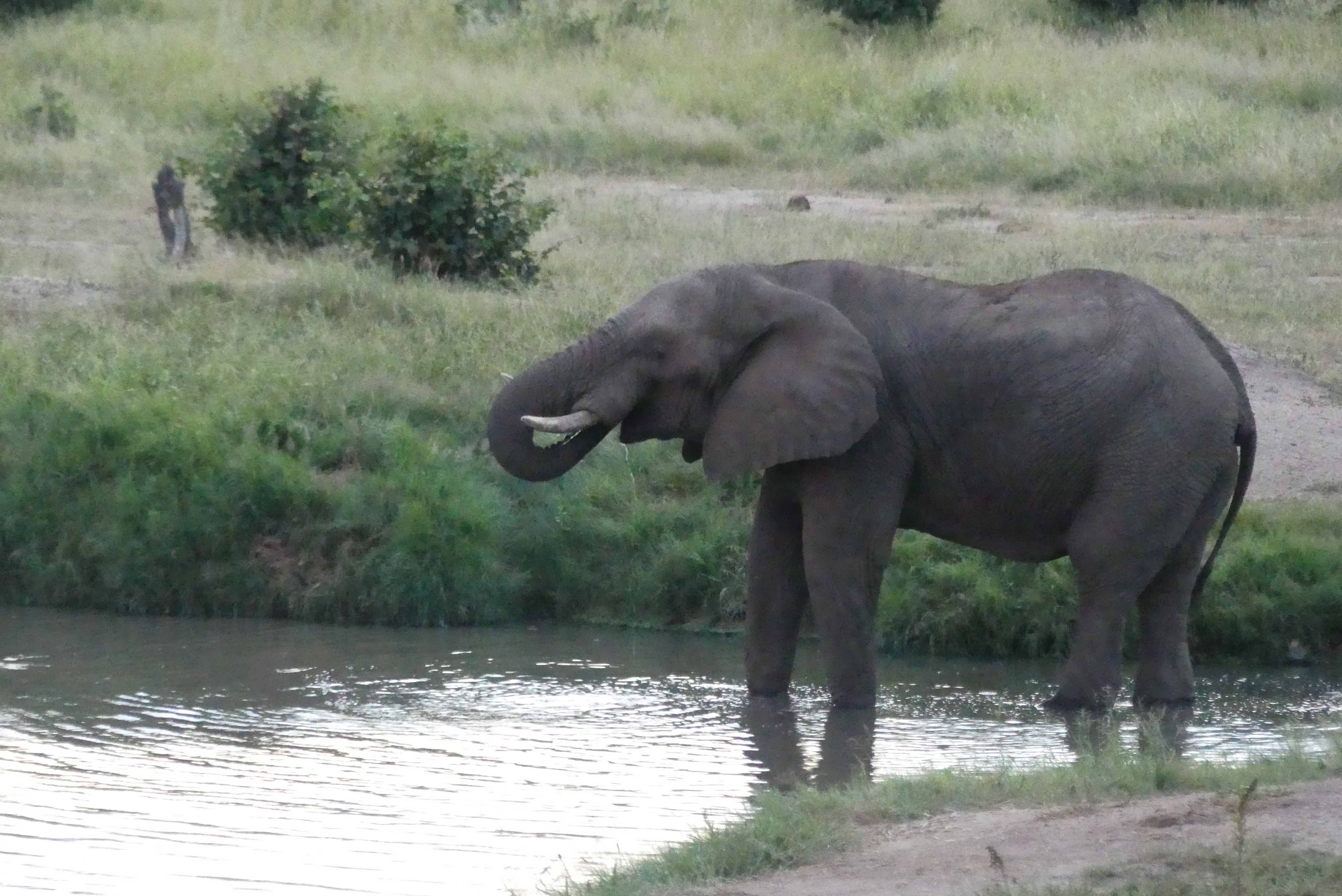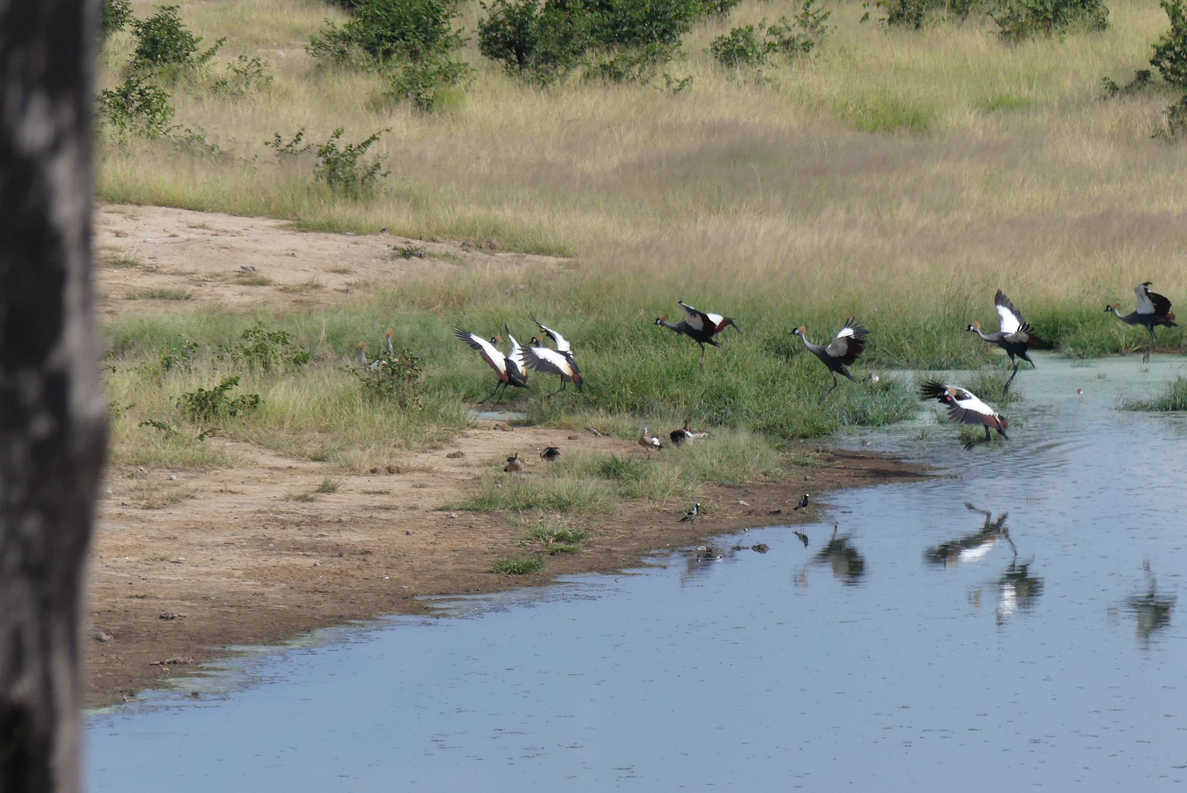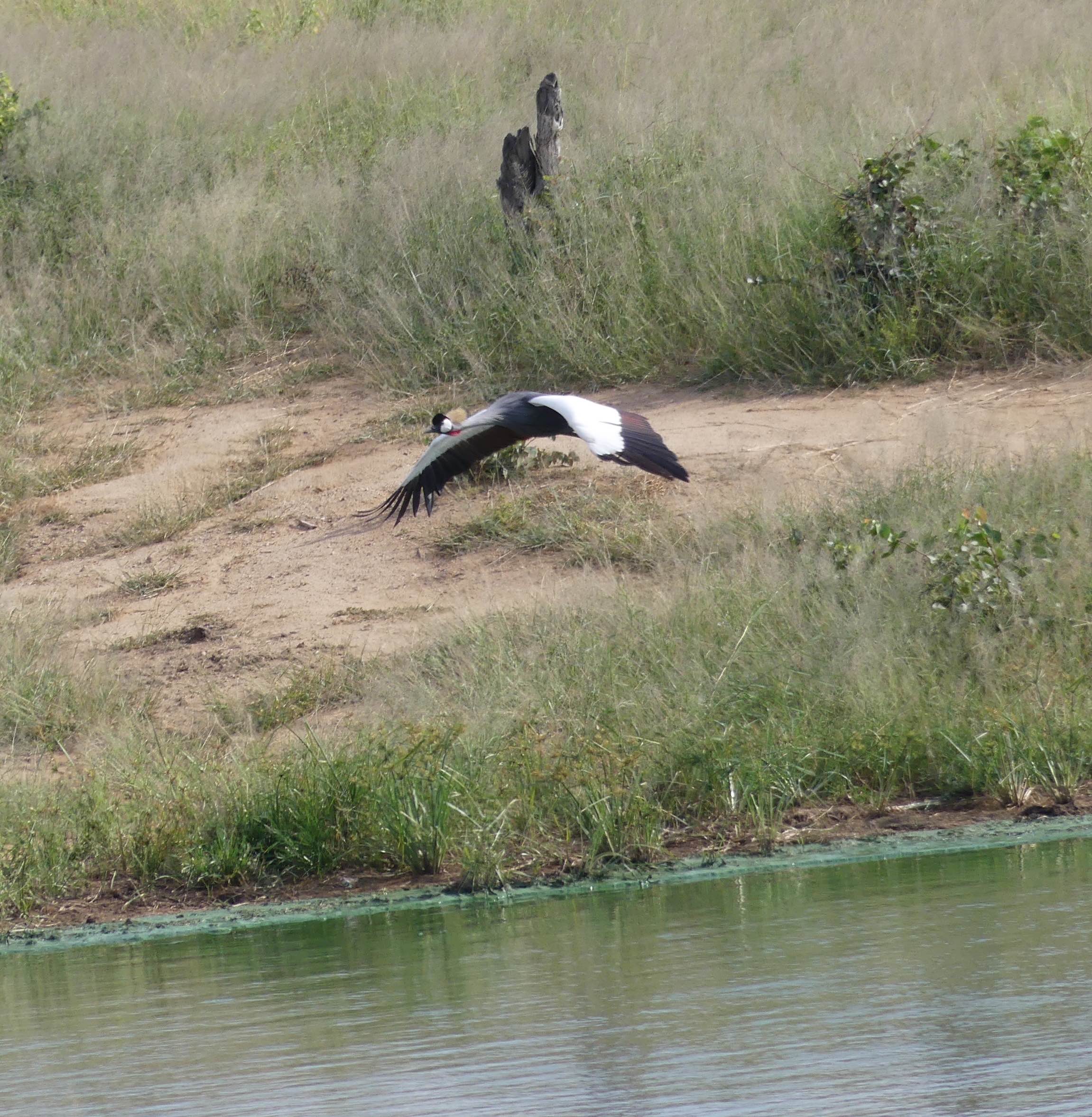 We entertained ourselves watching other animals, particularly a small flock of Crowned cranes that had taken residence at the dam and that, every so often, flew across it, probably in search of food. However, the absence of elephants drinking day and night while disappointing was a good sign that there was abundant water and food all over and that they had dispersed throughout the park.