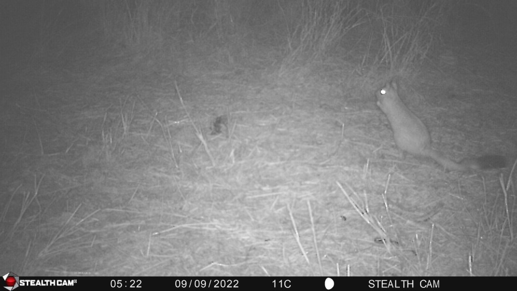 The following are the pictures of the animals that came in order of appearance. Please note that at the time we set the camera its clock was four hours ahead of the real time.