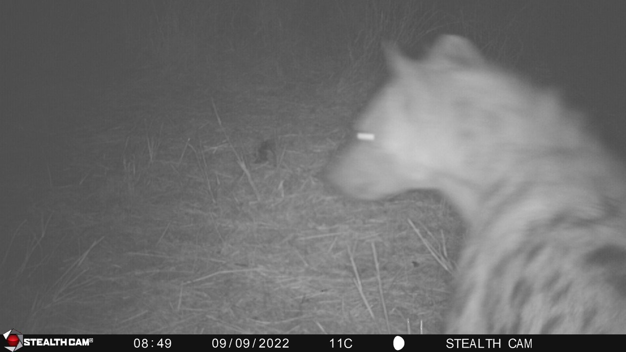 A spotted hyena. We expected the hyenas to come earlier. (Corrected time 04:49hs.)