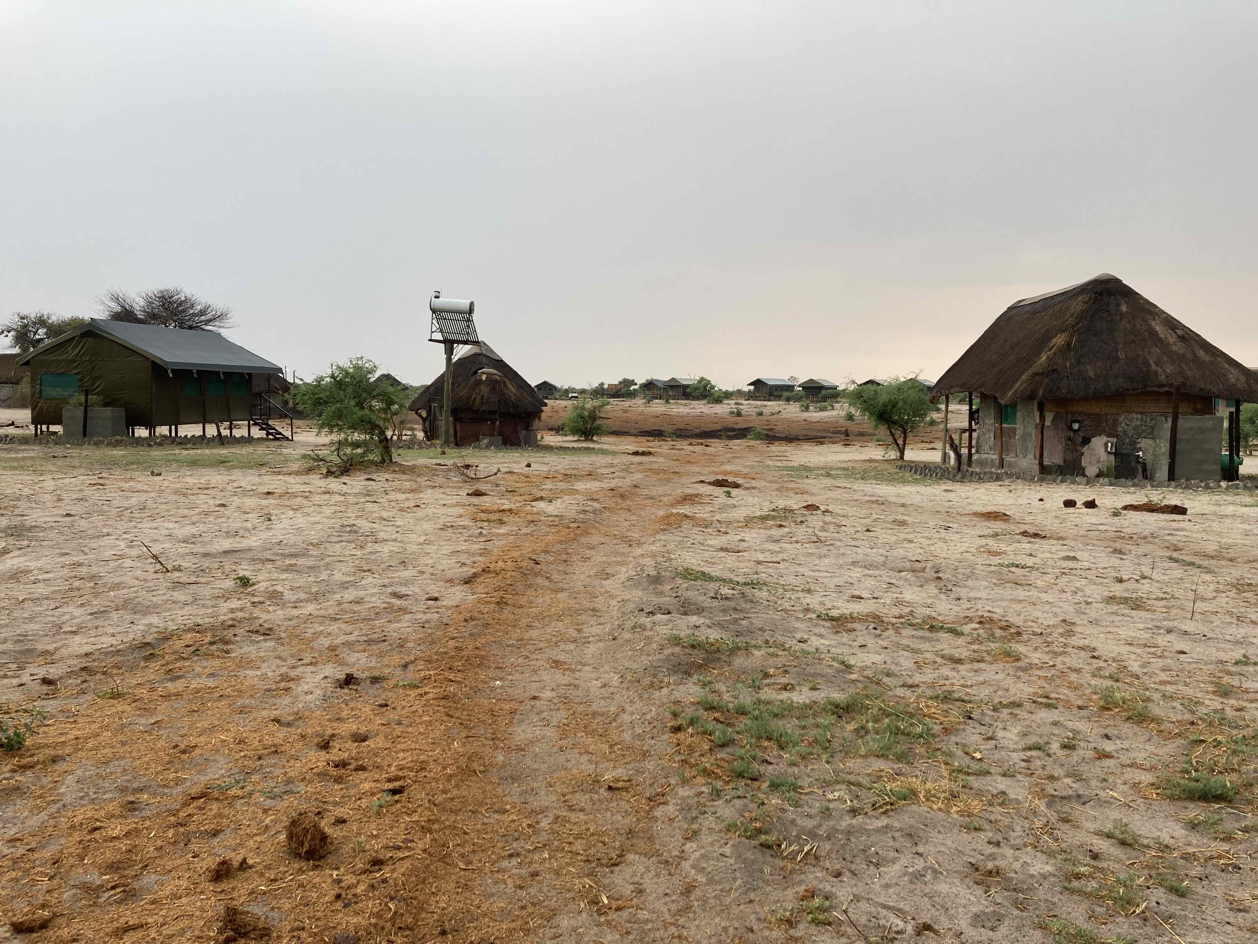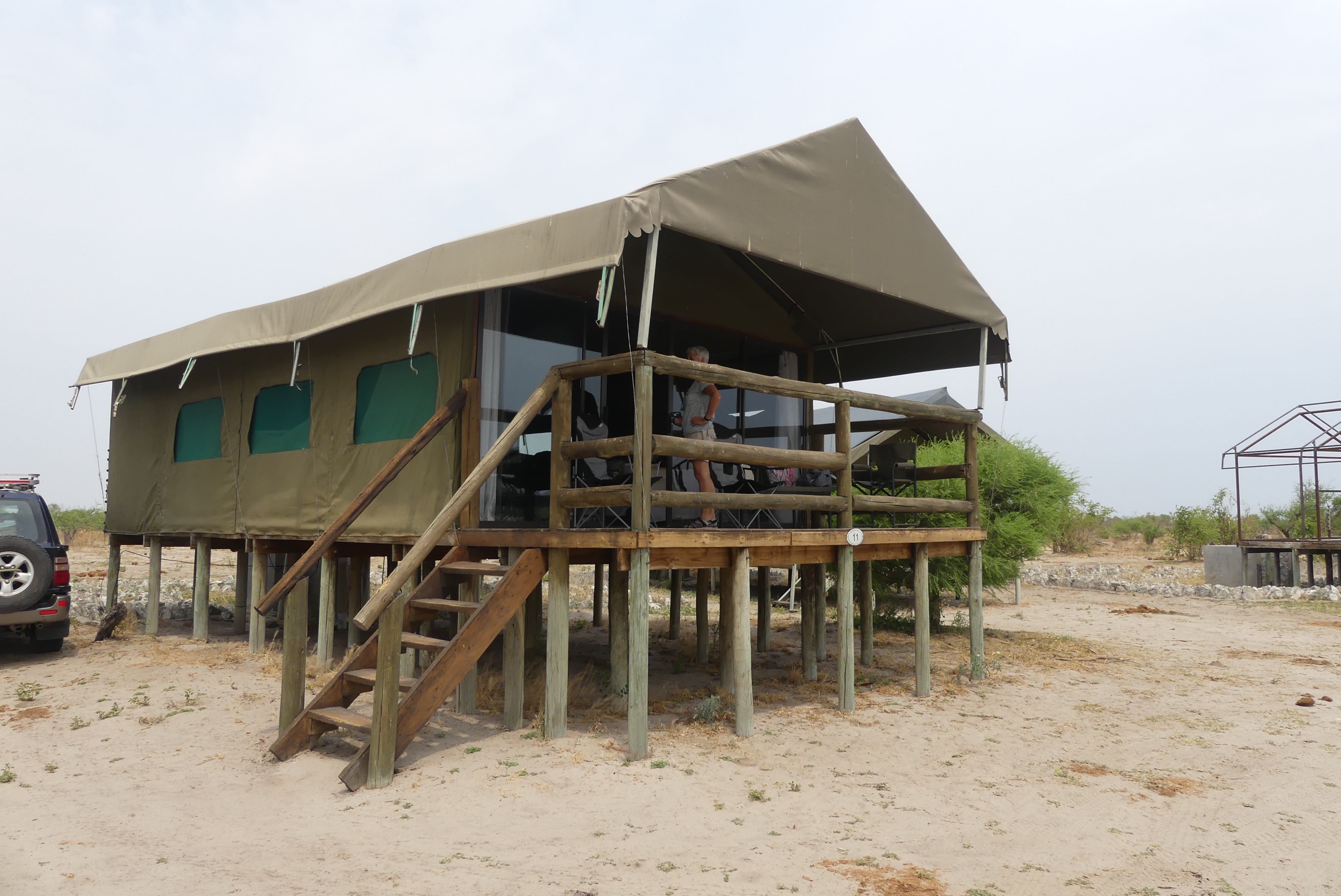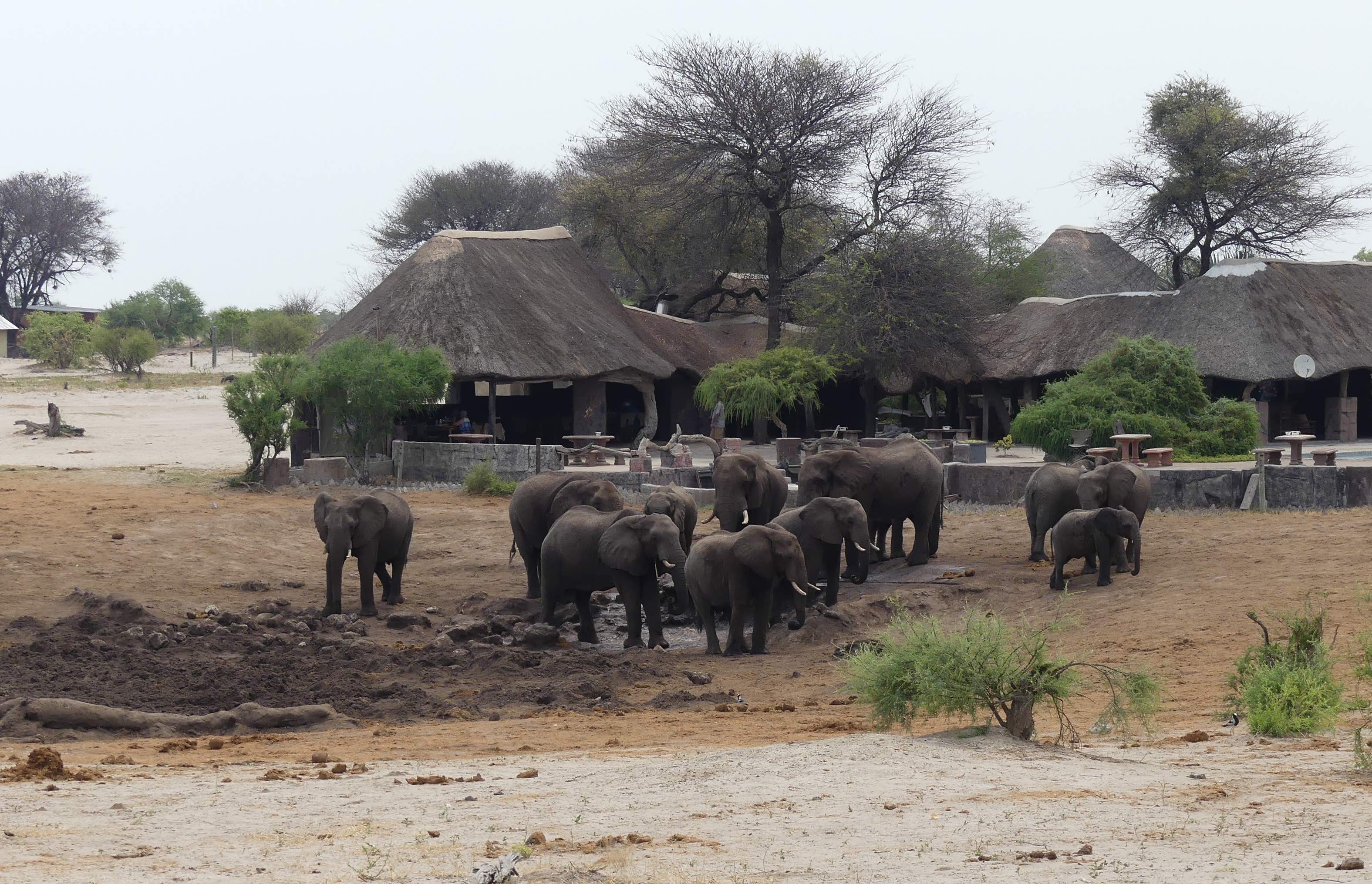 The entry sign says “Elephant Sands. Where elephants rule”. I confirm that this is true. The tented camp is built around a water hole that seems to be on an elephant highway between Botswana and Zimbabwe with little available water. We stayed in one of the tents that are built on stilts. It was very roomy and comfortable, offering an unobstructed view of the elephants at the hole.