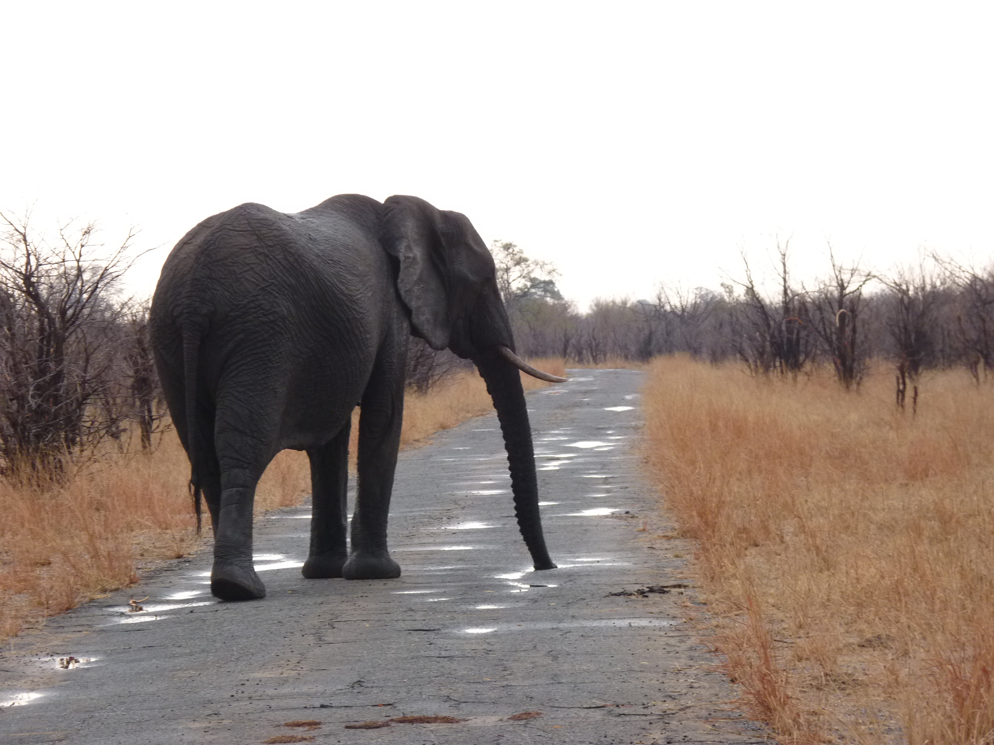 Although the dam at Shumba is almost your “private” dam, the flow of animals takes place mainly after dark, when mainly elephants come to drink. While this makes the nights entertaining from the “bush sounds” point of view, it is not easy to see the animals. believe me when I say that there was a lot of noise as elephant families and lone bulls interacted. Occasionally, elephants would be seen chasing each other and we suspect that some fighting also went on. We have seen evidence of clashes on our earlier visit in the form of chunks of ivory seen by the dam.