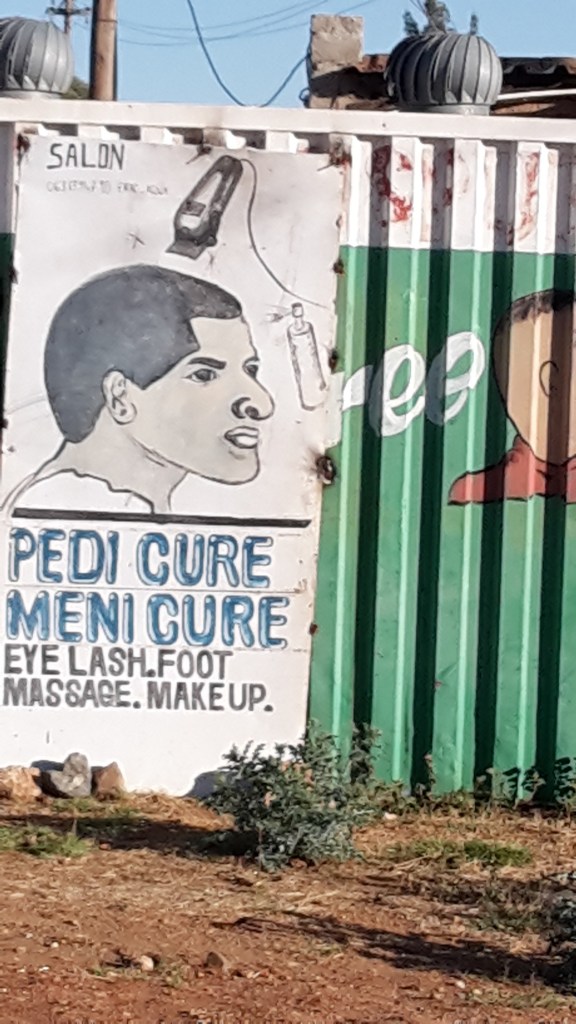 I believe we saw this advert travelling in South Africa. This beauty parlour offered “pedicure” and also “menicure”. At first I thought it was something to do with a cure for men! but then I realized that it meant “manicure”!