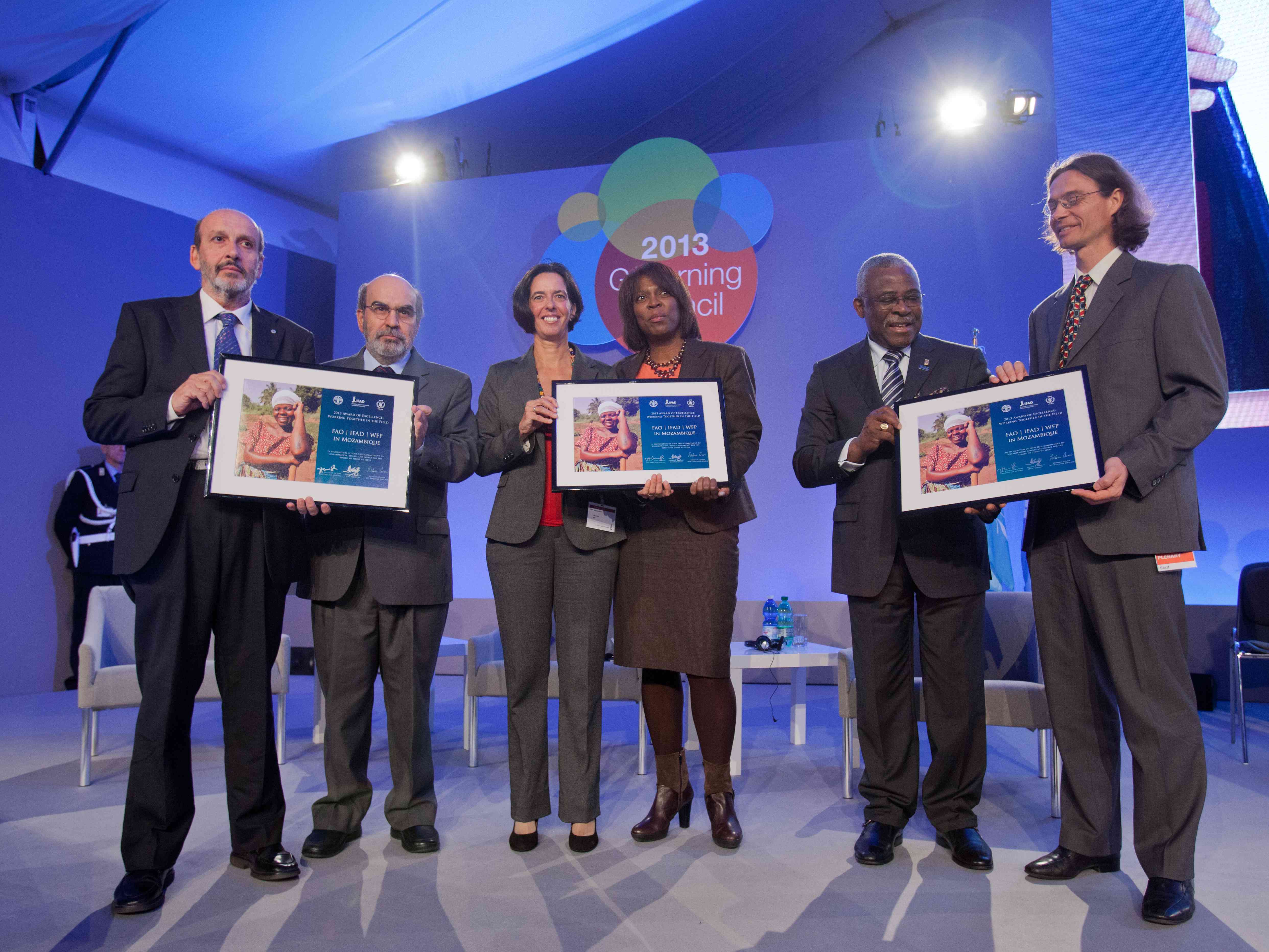 The author (far left) receiving the Rome-Based Agencies Award to the best collaboration at IFAD HQs., Rome. Picture credit: IFAD.