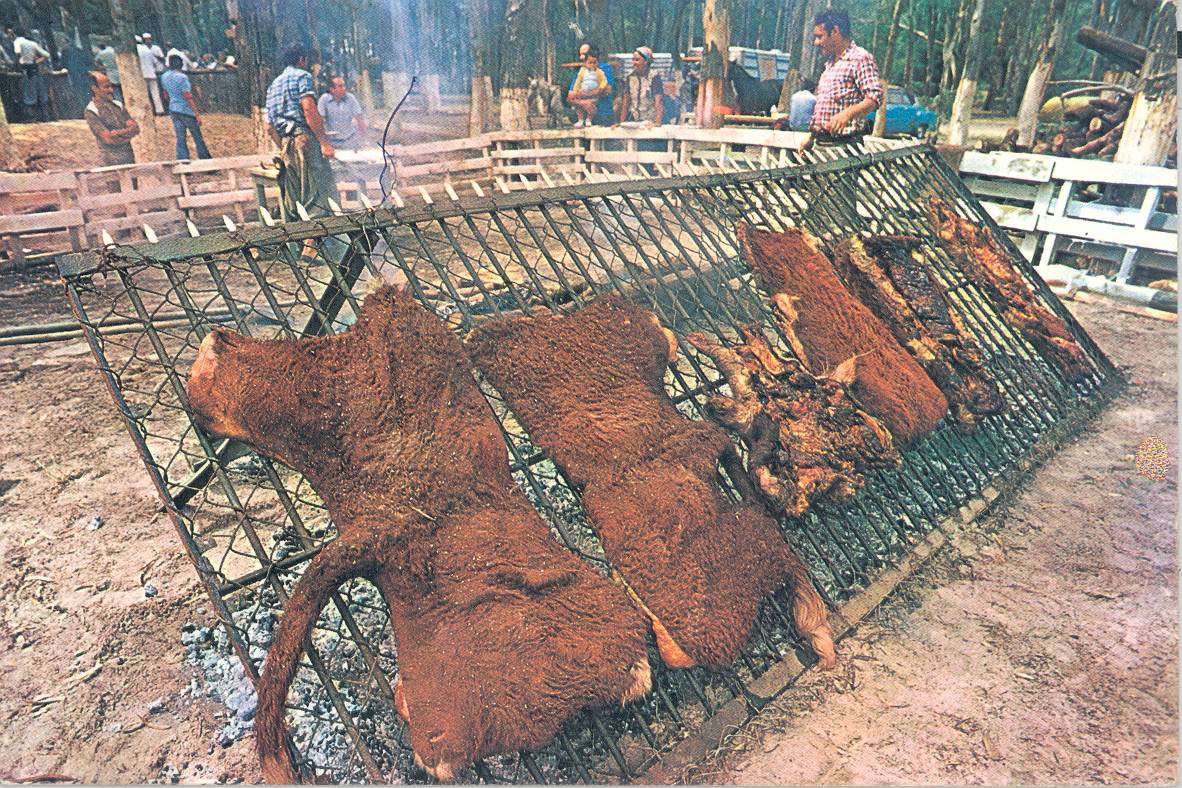 Asado con cuero (barbecue with hide) now rare, was still quite common at the time I worked as a field veterinarian in Uruguay.